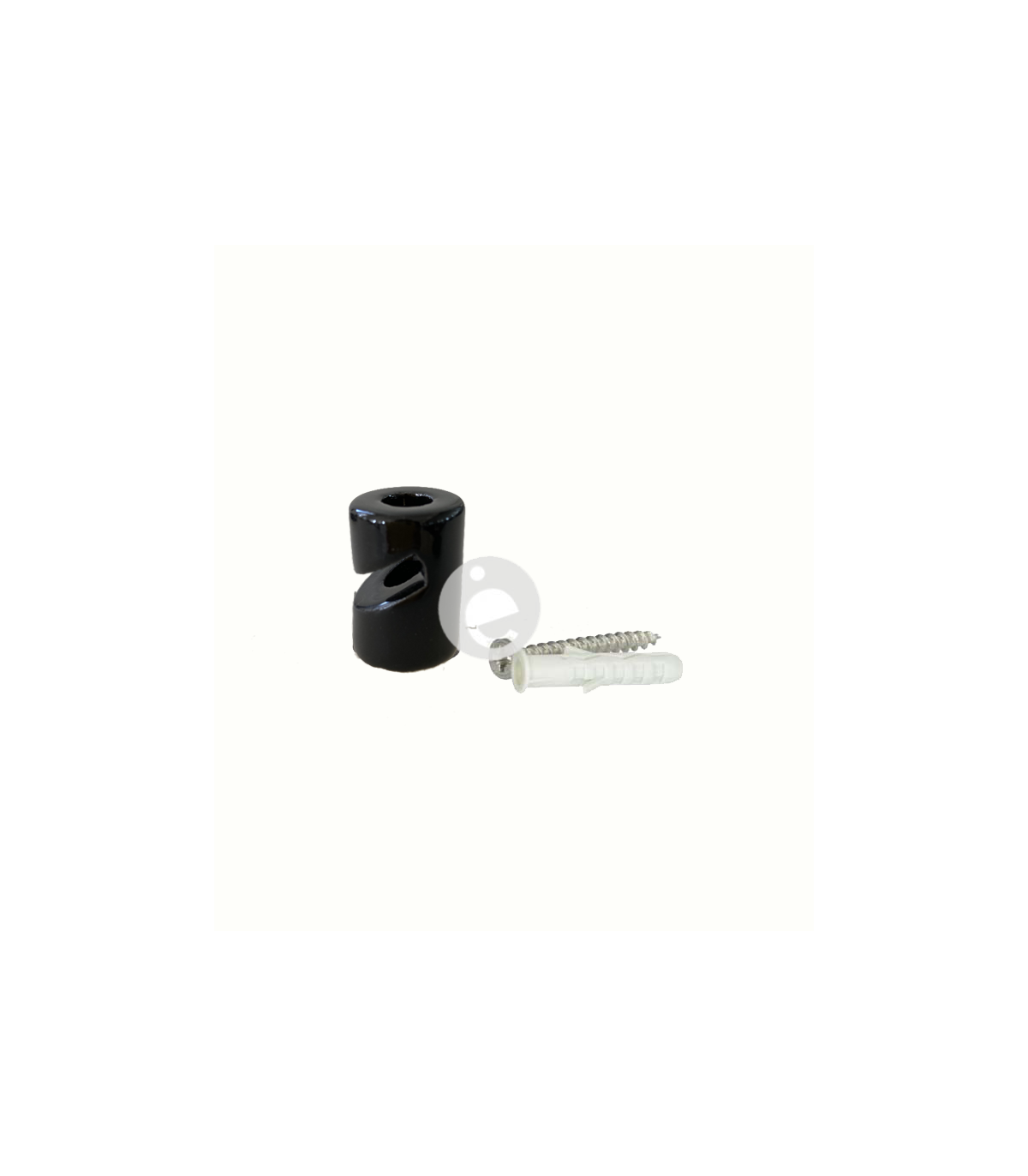 Sujeta cable porcelana, con un diámetro de 20 mm y una altura de 30 mm para fijación del cable al techo o pared. Al introducir el cable en este accesorio la presión del mismo impide el movimiento del cable dejándolo a la altura y con la tensión deseada. Disponible en colores blanco y negro. Incluye taco y tornillo.