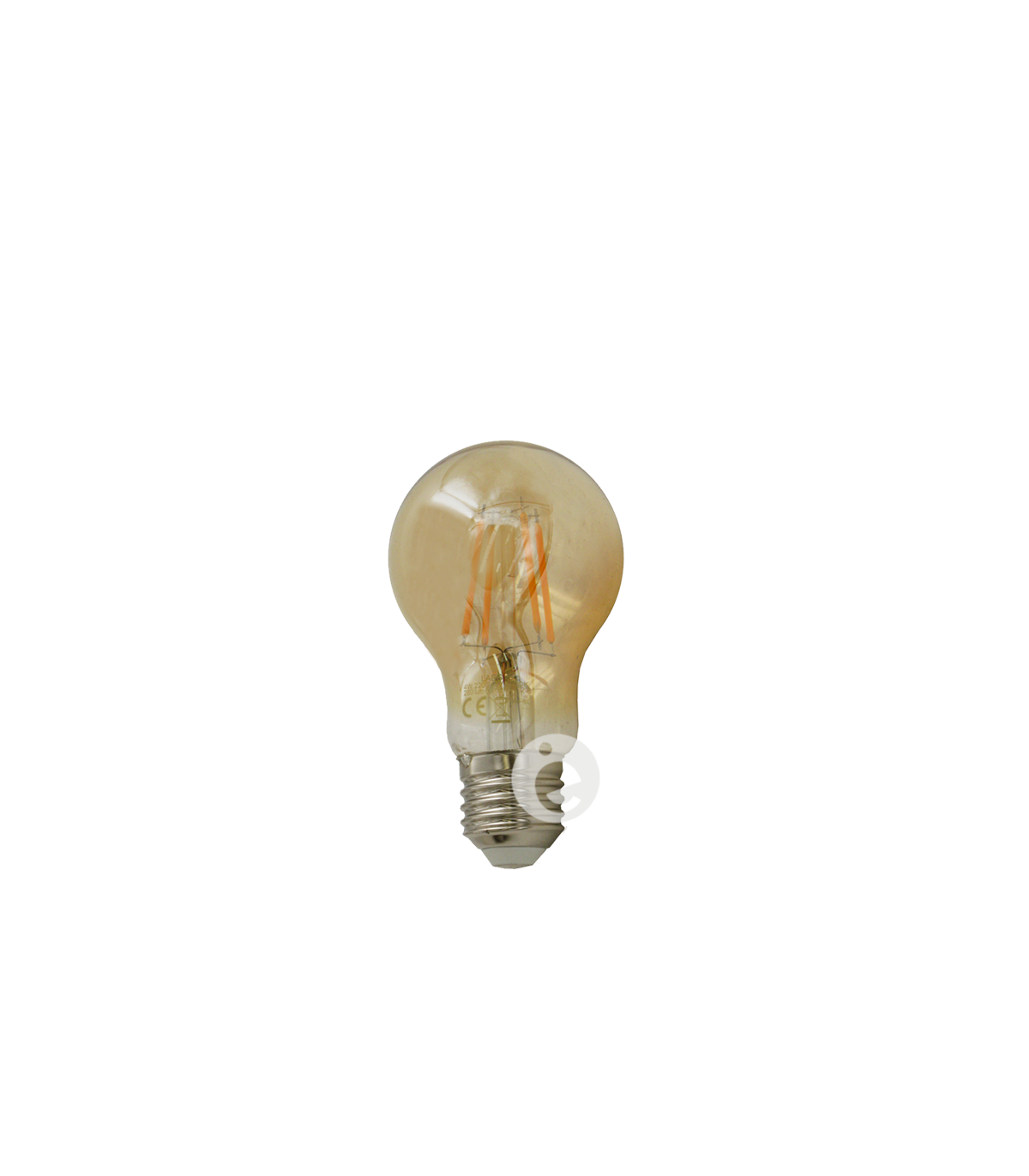Bombilla LED estándar decorativa rosca E 27, diámetro de 64 mm longitud de 160 mm. Temperatura de color 2200 K, luz muy cálida. 240 V 4W, 280 lm. No es regulable. Vida útil 20.000 h.