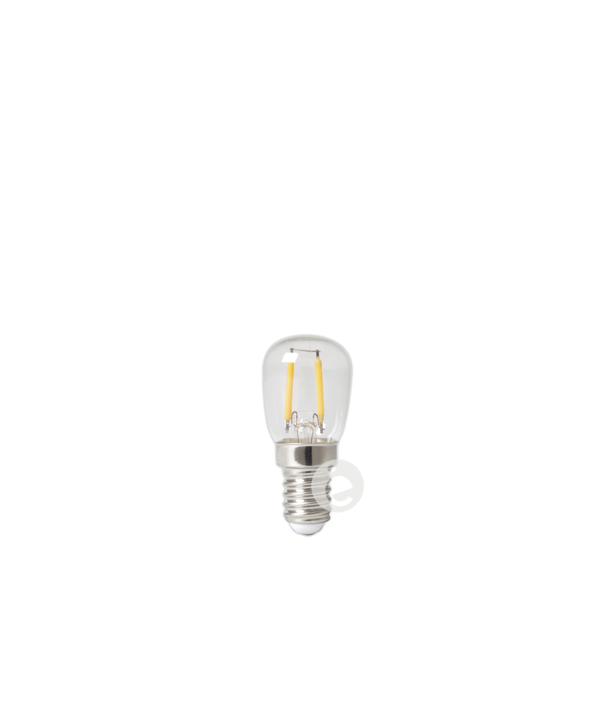 Bombilla LED filamento, 240V 1,5 W. Diam.26x58 mm.. Temperatura de color 2700 K, luz cálida. 136 lm. Rosca E14. Vida útil 15.000 h.
