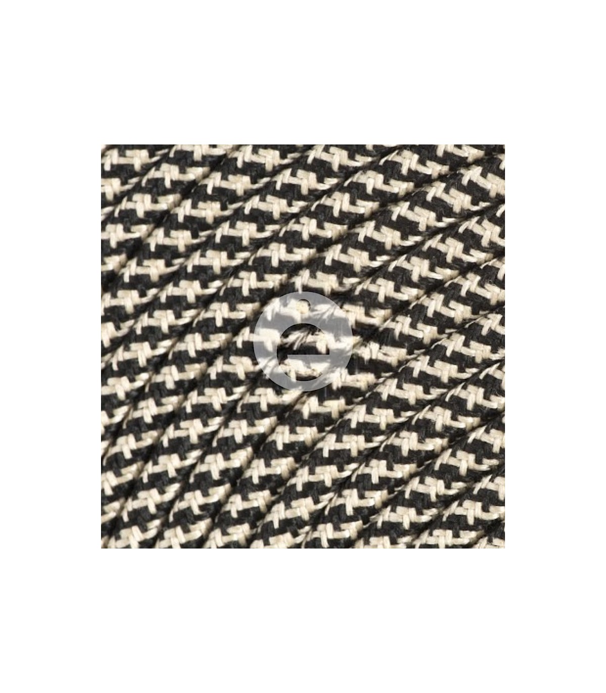 Cable flexible redondo con doble aislamiento, recubierto en tejido. Mezcla lino natural - arena negro pata de gallo.