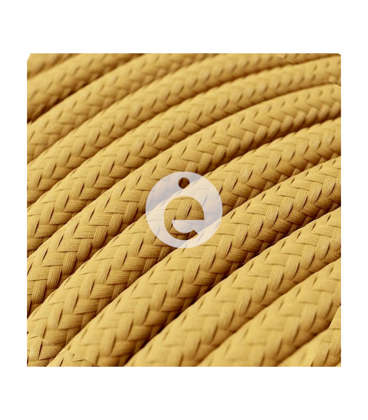 Cable flexible redondo con doble aislamiento, recubierto en tejido. Algodón efecto mate color mostaza.