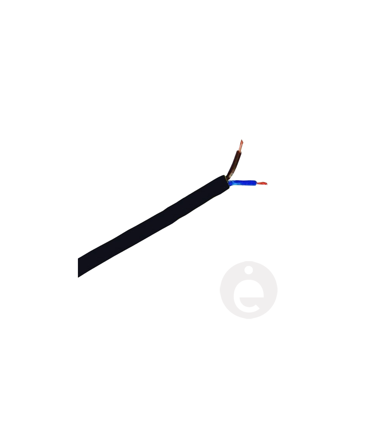 Cable rectangular 5x11mm 2x2,5mm2 1KV negro para montaje de verbenas, no olvides elegir los portalámparas de verbena para cable plano, las clavijas y /o ganchos para su instalación.