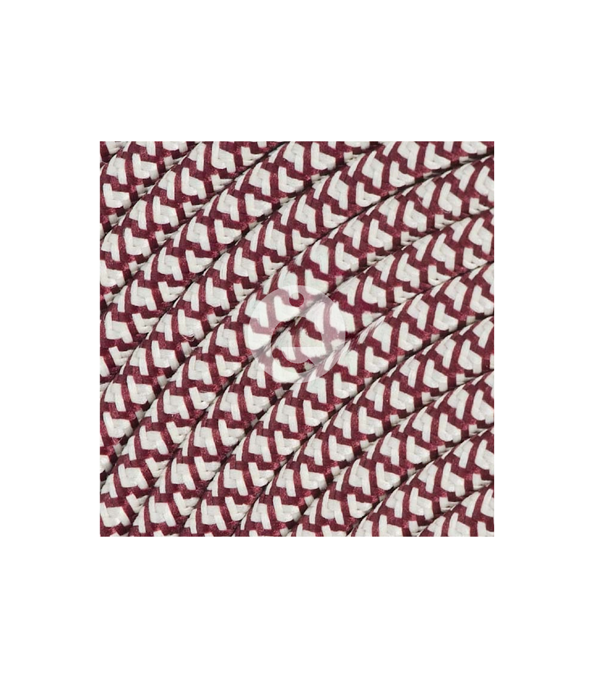 Cable flexible redondo con doble aislamiento, recubierto en tejido. Mezcla efecto seda , burdeos y crema.