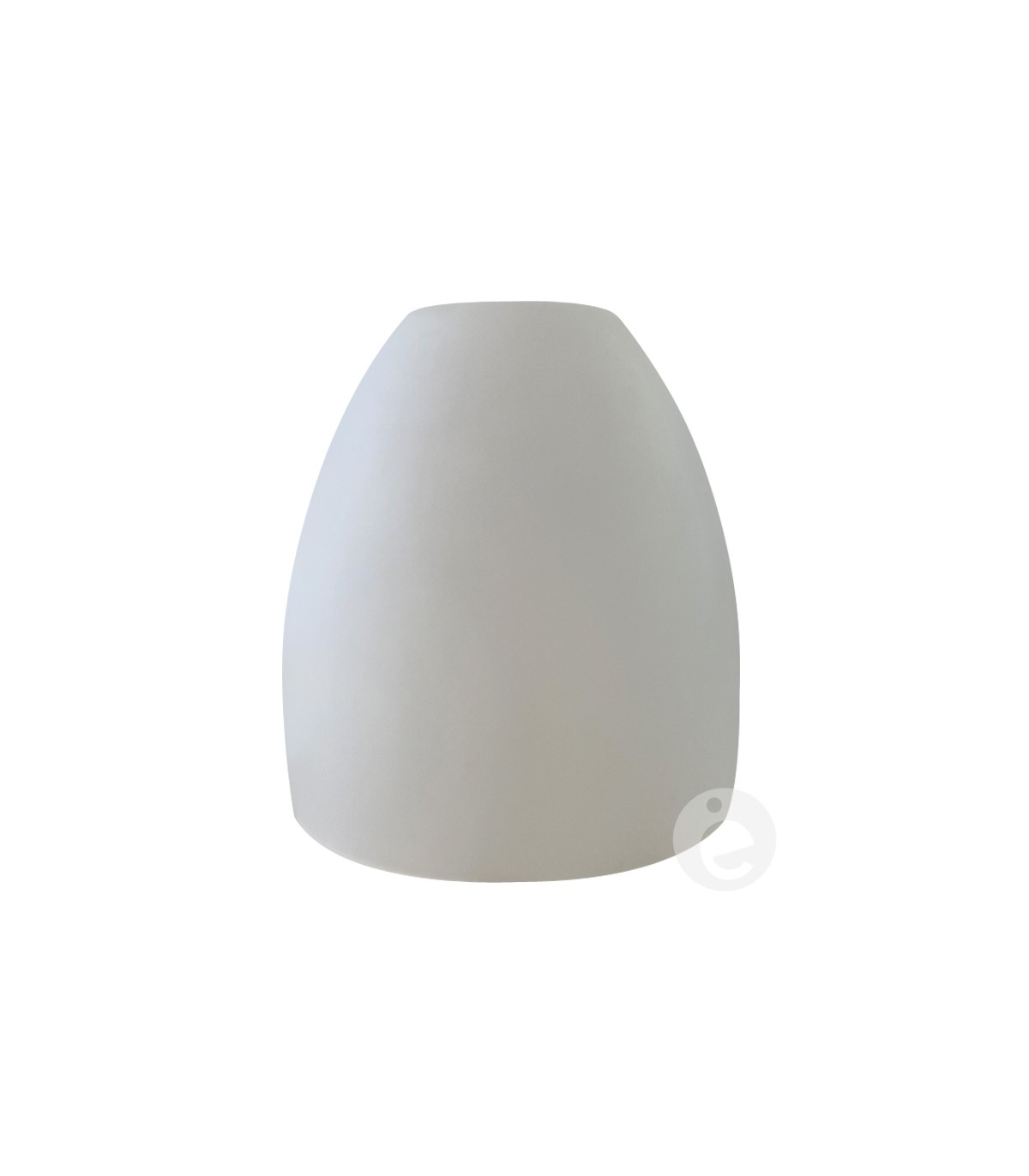 Campana de cristal opal semi translúcida. Dimensiones: 140 mm de diámetro por 160 mm de alto. No olvides acompañarlo con un casquillo roscado con dos aros (portalámparas) y por supuesto un bonito cable!!