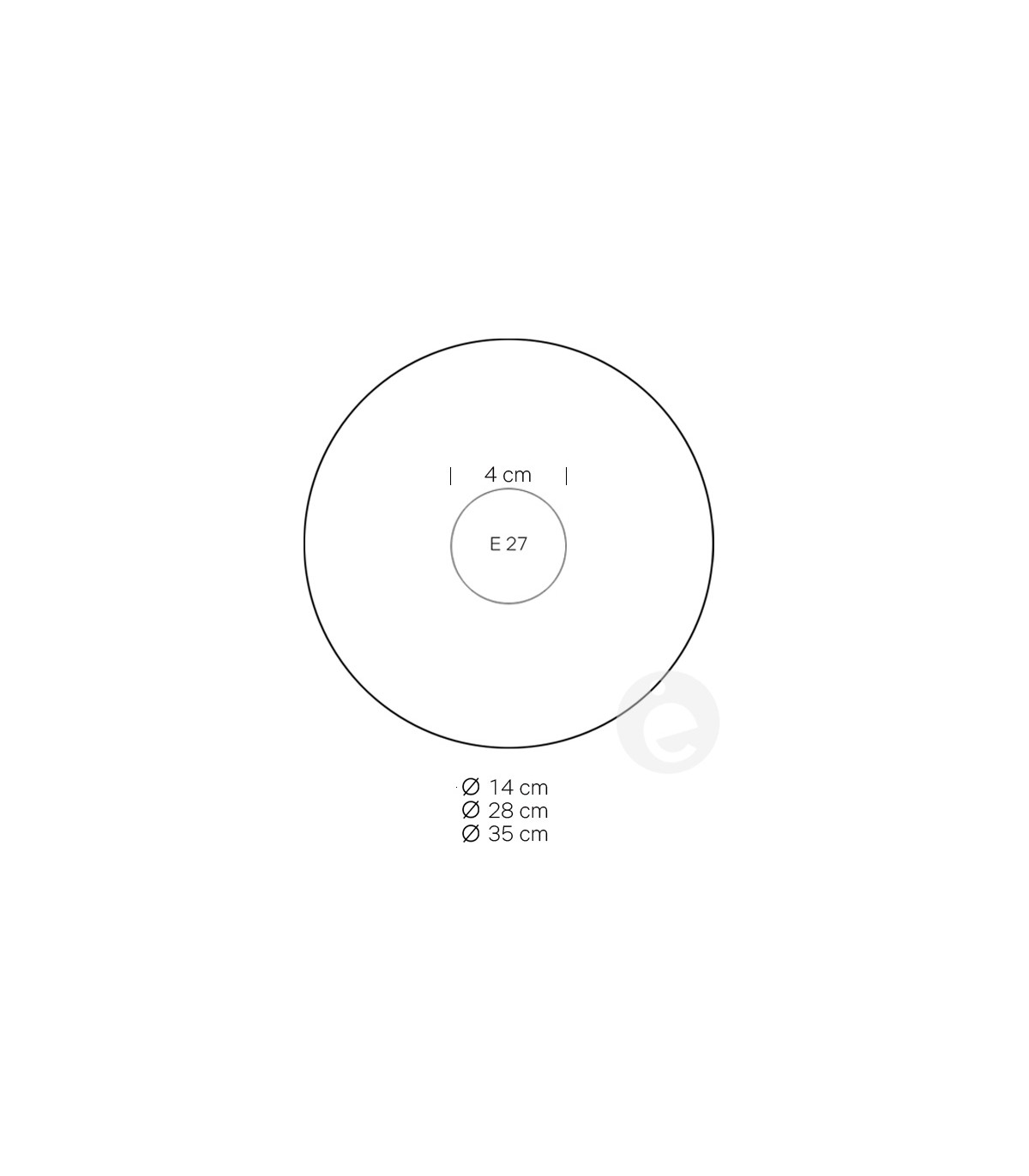 · Diámetro: pequeño 14 cm, mediano 28 cm , grande 35 cm, con diámetro interior de 4 cm (para casquillo E27)
