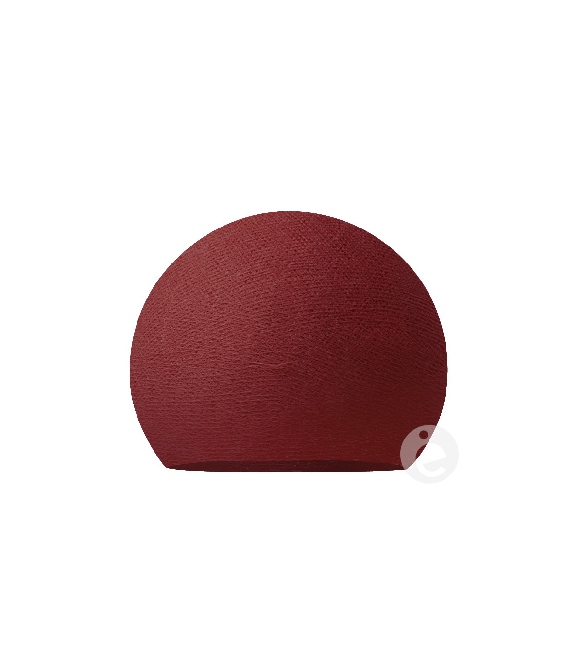 Pantalla cúpula de hilo color burdeos, diámetro 36 cm. La bola se suministra doblada, con un globo para proceder a su inflado y montaje. Aunque es muy fácil, no olvides descargarte las instrucciones de nuestra web. Incluye casquillo E27 y soporte para casquillo. Visita el apartado de cables para elegir el tuyo y el soporte de techo. Se recomienda utilizar bombilla de led.