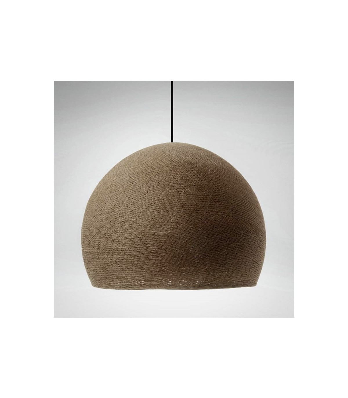 Pantalla cúpula de hilo color beige, diámetro 36 cm. La bola se suministra doblada, con un globo para proceder a su inflado y montaje. Aunque es muy fácil, no olvides descargarte las instrucciones de nuestra web. Incluye casquillo E27 y soporte para casquillo. Visita el apartado de cables para elegir el tuyo y el soporte de techo. Se recomienda utilizar bombilla de led.