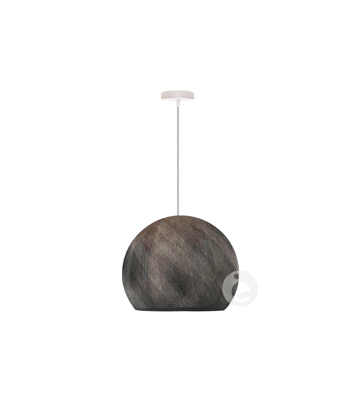 Pantalla cúpula de hilo color gris mezcla, diámetro 36 cm. La bola se suministra doblada, con un globo para proceder a su inflado y montaje. Aunque es muy fácil, no olvides descargarte las instrucciones de nuestra web. Incluye casquillo E27 y soporte para casquillo. Visita el apartado de cables para elegir el tuyo y el soporte de techo. Se recomienda utilizar bombilla de led.