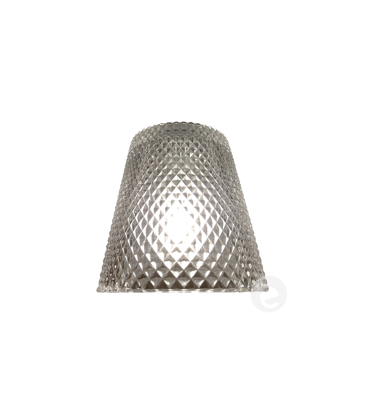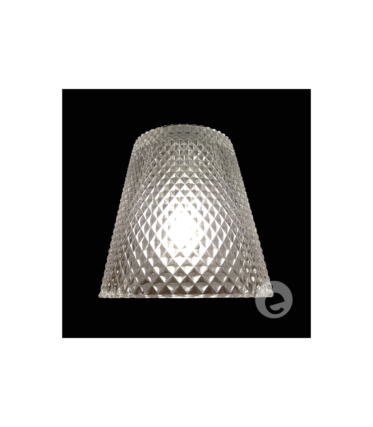 Écran modèle étoile, en verre. Dimensions 125 x 120 mm. N’oubliez pas d’ajouter votre douille filetée en thermoplastique ou en métal E27, votre câble et votre support !!