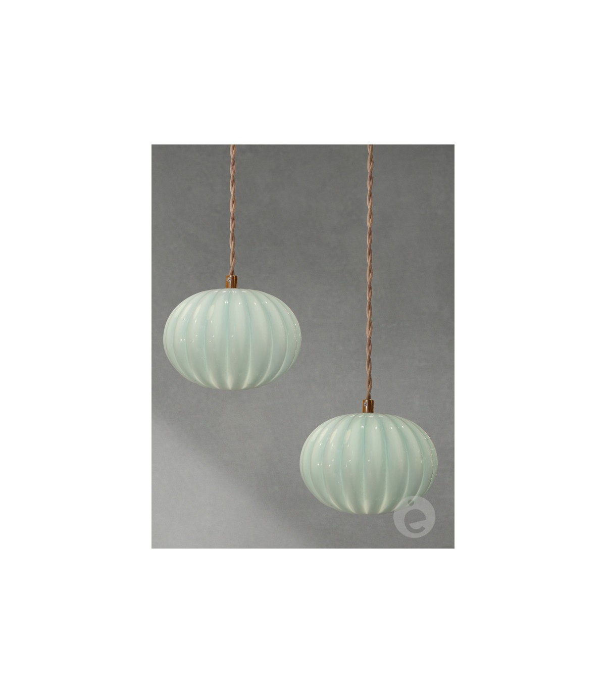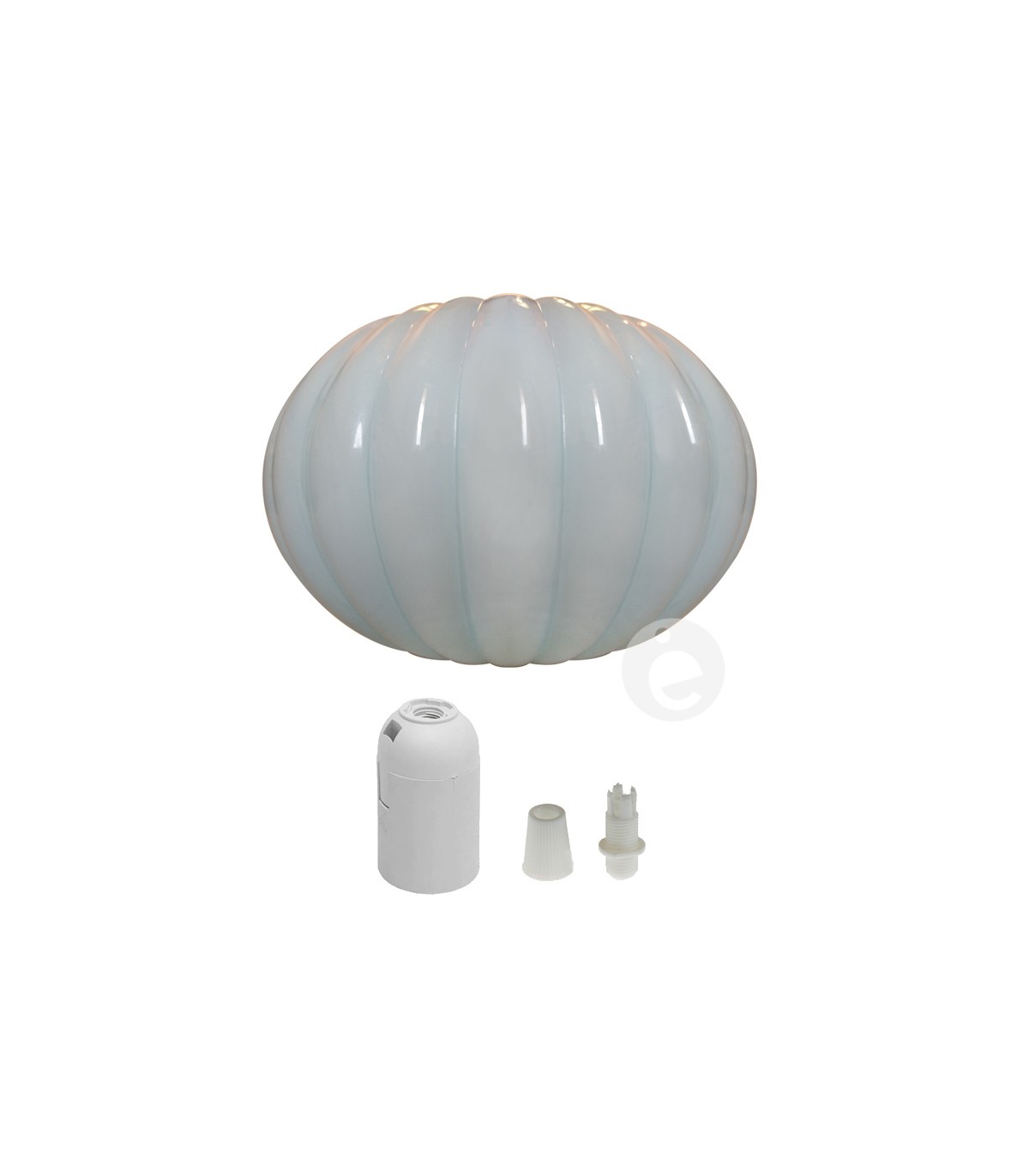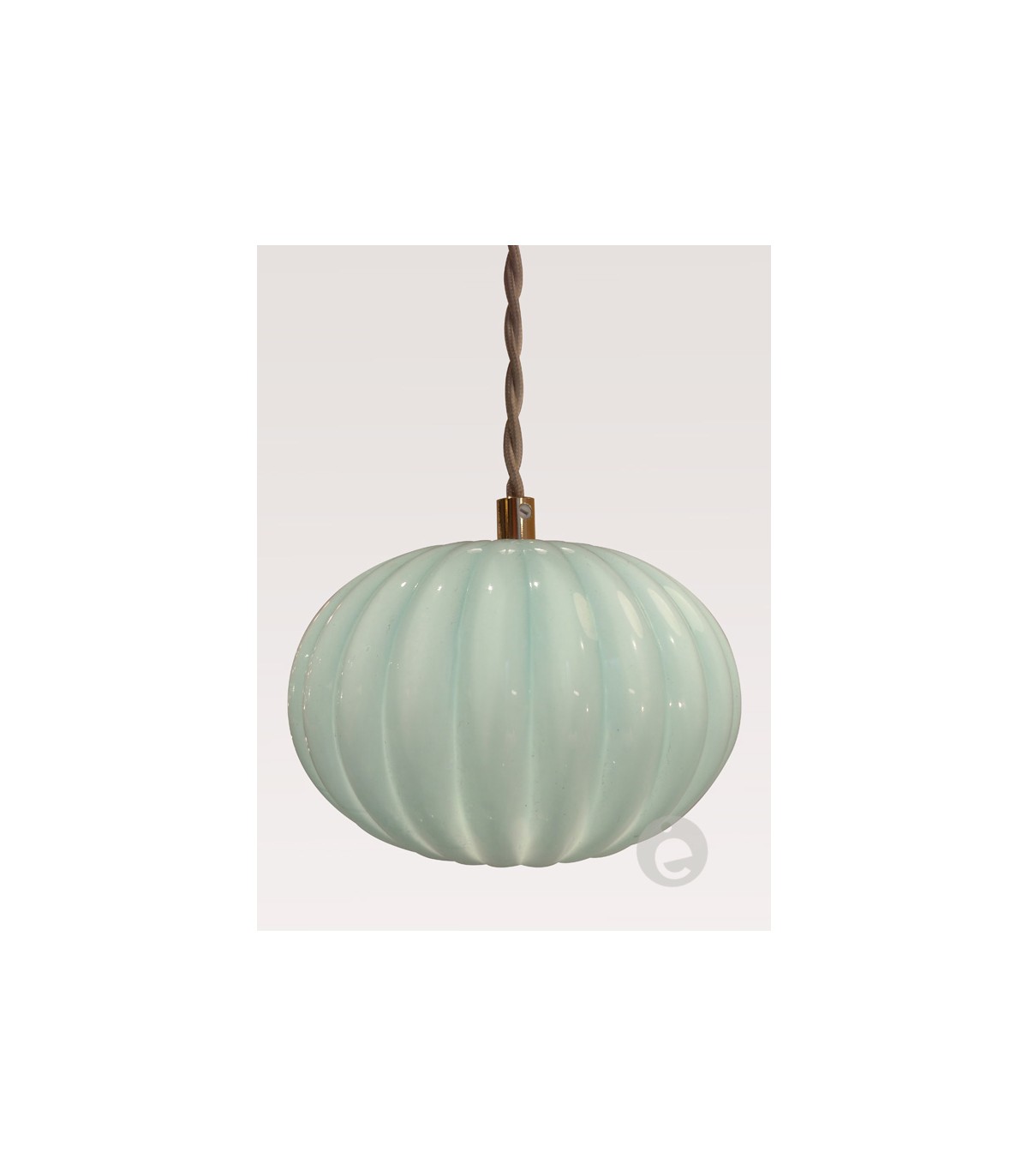 Écran en verre bleu modèle Pepa, comprend un presse-étoupe en plastique et une douille thermoplastique E14 ou G9. Dimensions 13,5 cm et 11 cm N’oubliez pas de choisir votre câble, votre support et votre ampoule !