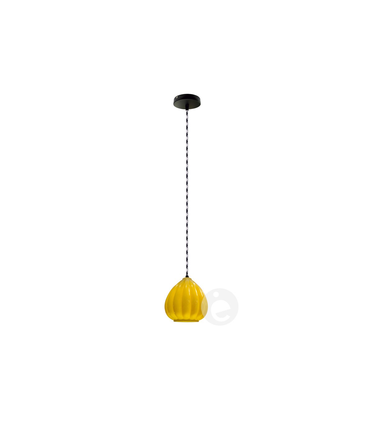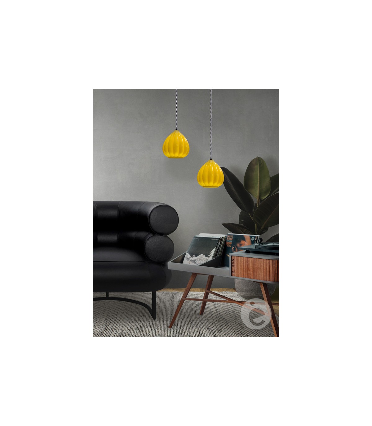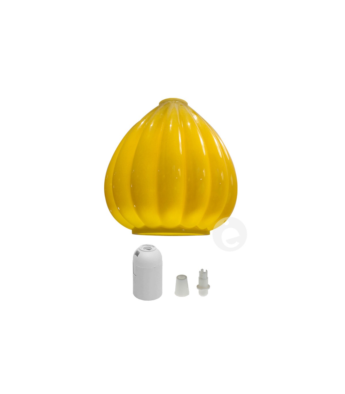 Abat-jour modèle Pepita, verre jaune, comprend une douille thermoplastique E14, n’oubliez pas d’ajouter votre câble et support préféré !!