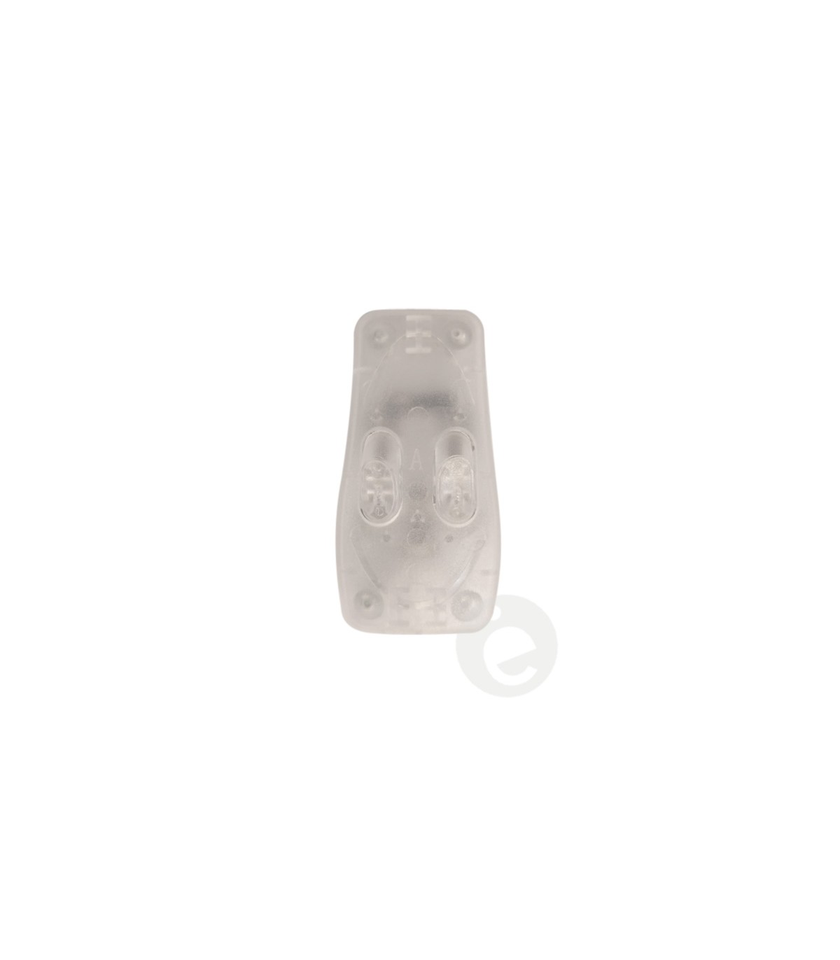 Interrupteur transparent à double pas bipolaire avec une tension nominale de 250 V, parfait pour créer vos lampes de table avec deux interrupteurs allumés. Fermeture à pression.