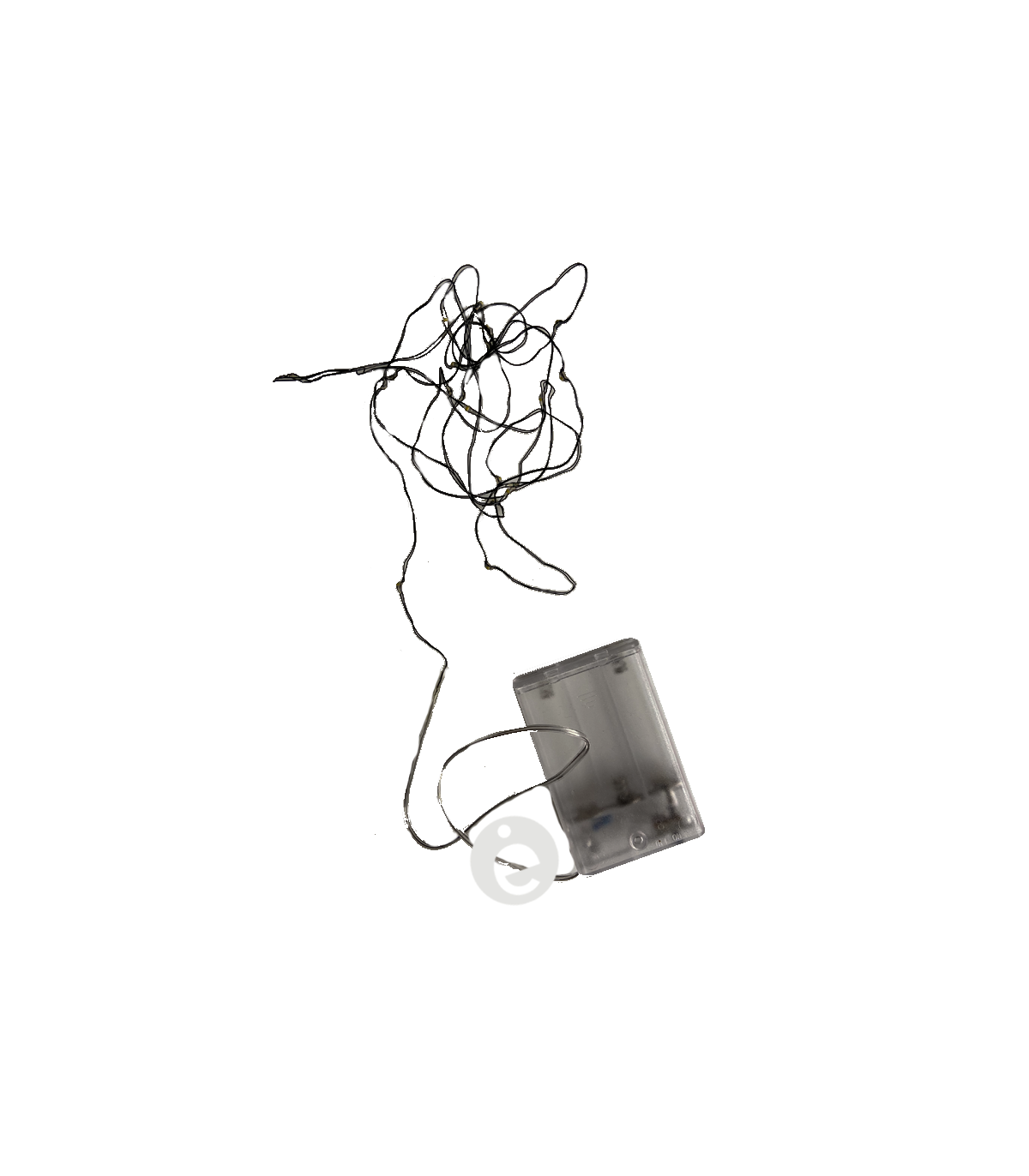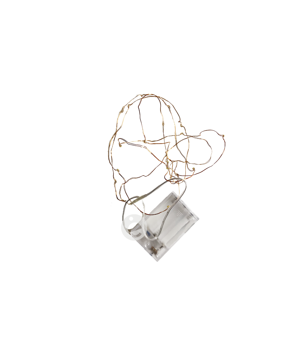 Bande de fil de cuivre de 1,90 m de long, avec lumières LED. Lumière chaude et alimentation avec 3 piles (non incluses).