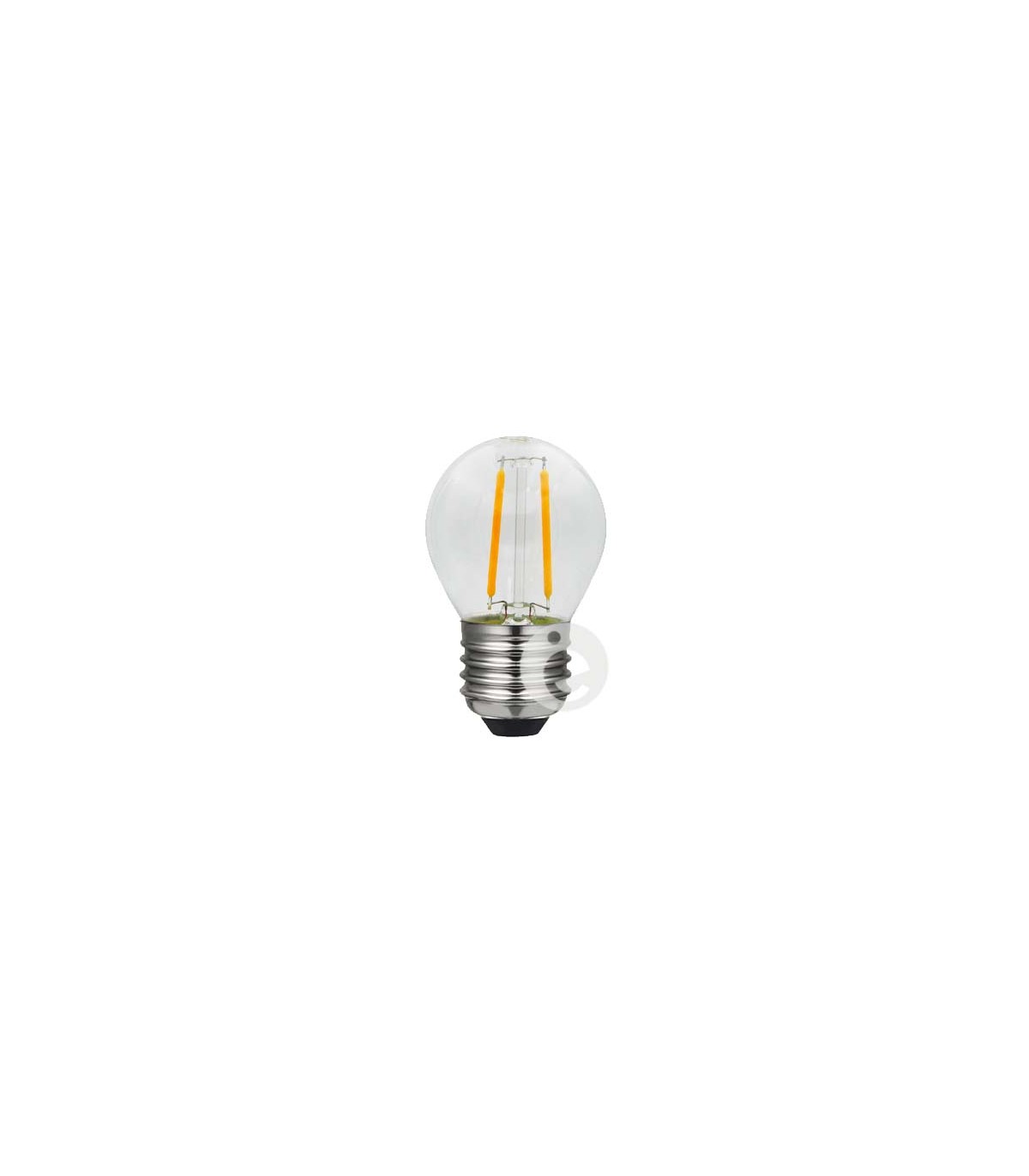 Ampoule à filament LED sphérique transparente 2 W E27 2700 K. 230 lm feux de croisement, 15 000 h. ampoule très efficace, lumière chaude, Diamètre 45 mm x 75 mm, idéale pour l’installation dans les festivals.