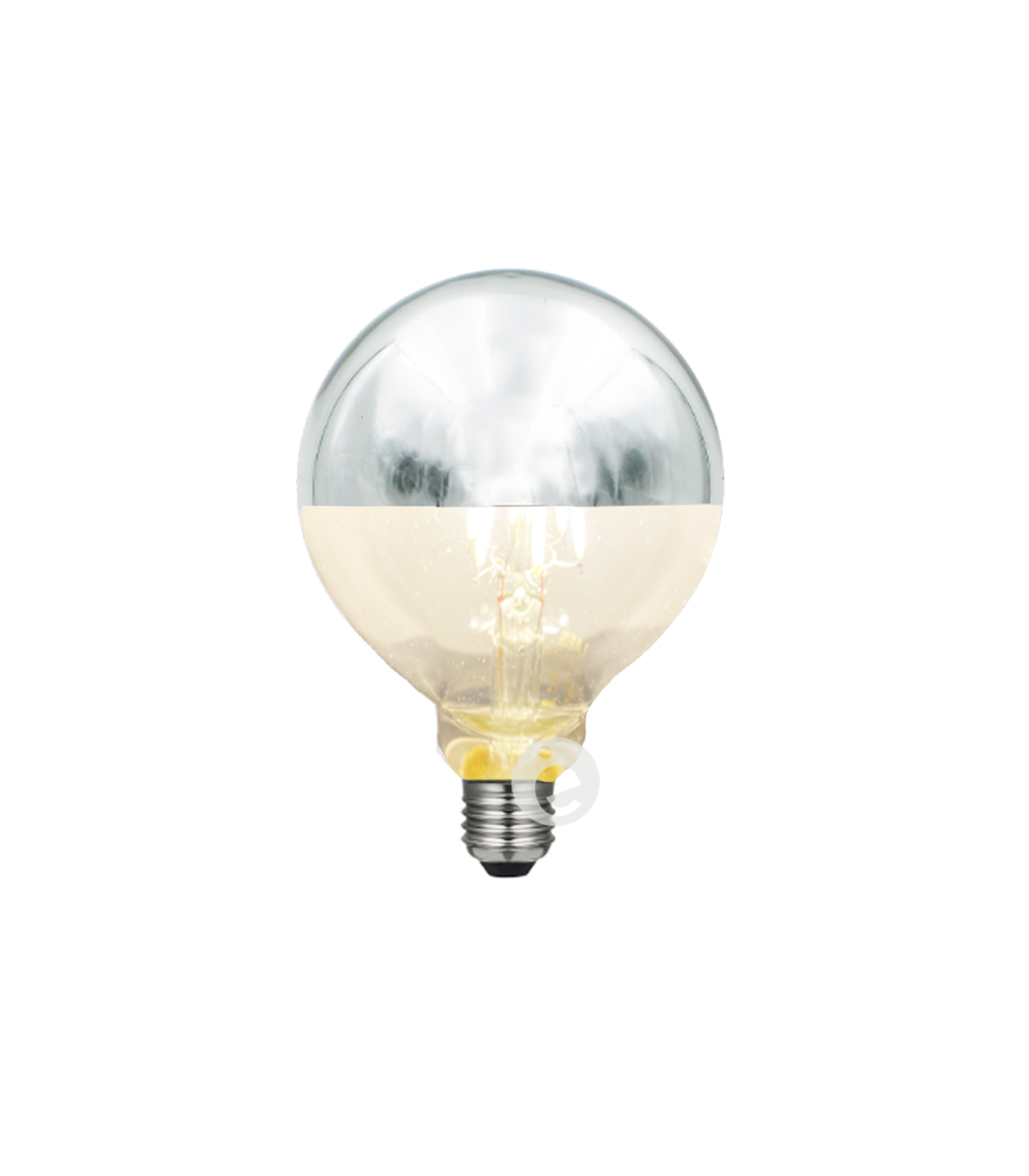 Ampoule dôme LED argentée G125 6 W équivalente à 48 W. Très efficace A+, flux lumineux élevé 600 lm. Ampoule idéale pour les espaces rétroéclairés.
