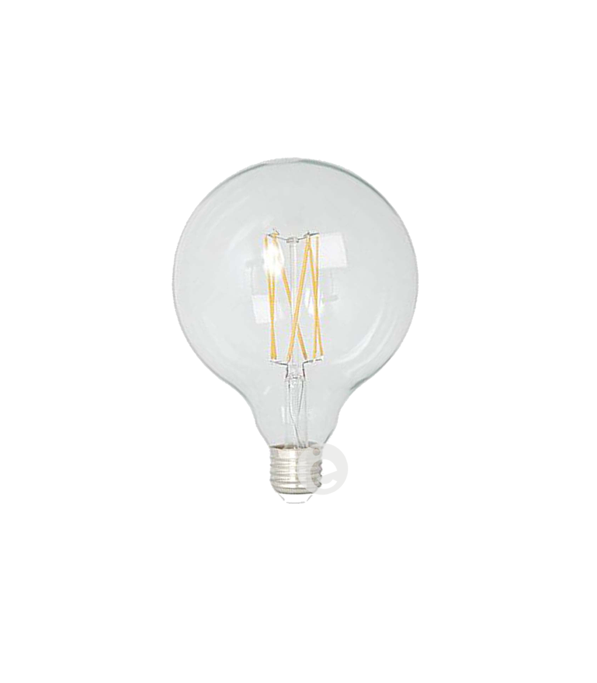 Ampoule à filament long globe LED, verre transparent. Diamètre 125 mm, longueur 167 mm Température de couleur 2300 K, lumière chaude. 350 lm 4 W. Filetage E27, réglable. Durée de vie 25 000 h. Réglable.