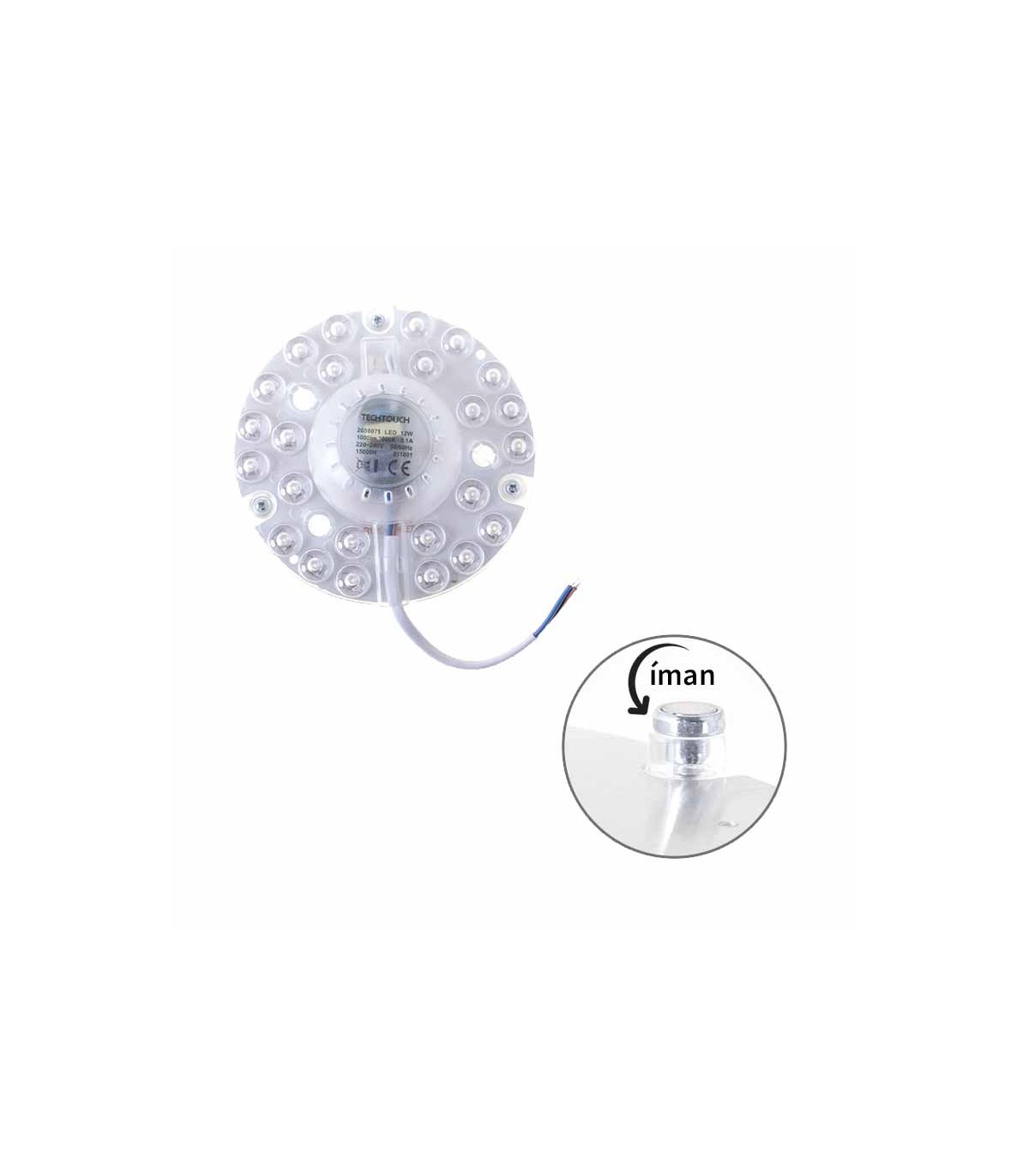Module LED SURF 12 W, 220-240 V ~ 50/60 Hz. Diamètre 12,5 cm, hauteur 3,5 cm. Rendement lumineux élevé, 1000 lm. Lumière chaude 3000 K, angle d’ouverture 120º. Très efficace, 15 000 heures. Avec aimants pour une installation facile sur des surfaces métalliques.
