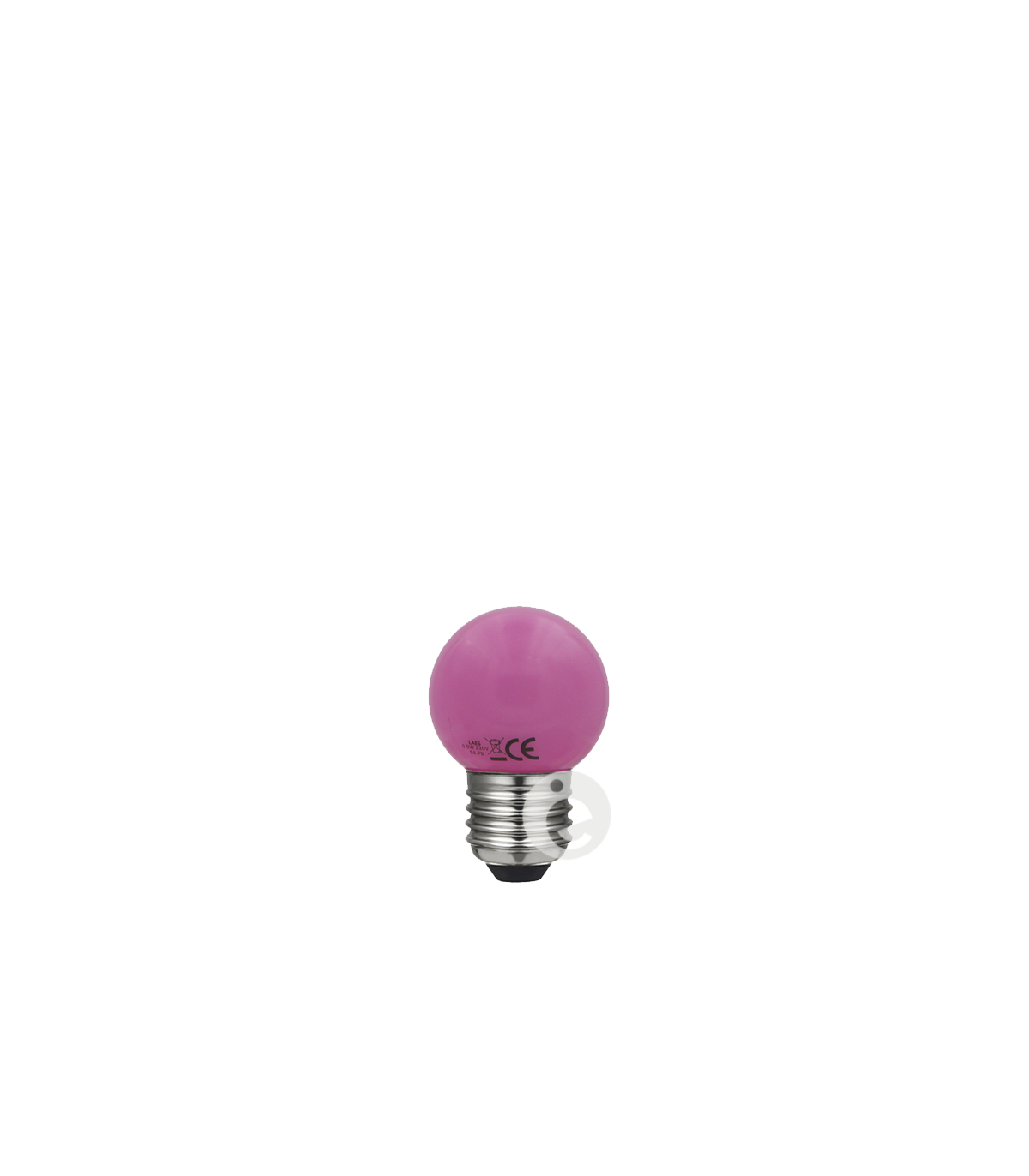 Ampoule LED sphérique 0,9 W rose, 240 V E27. Ampoule efficace à faible luminosité, Dimensions 45 mm x 73 mm, parfaite pour une installation dans les festivals.