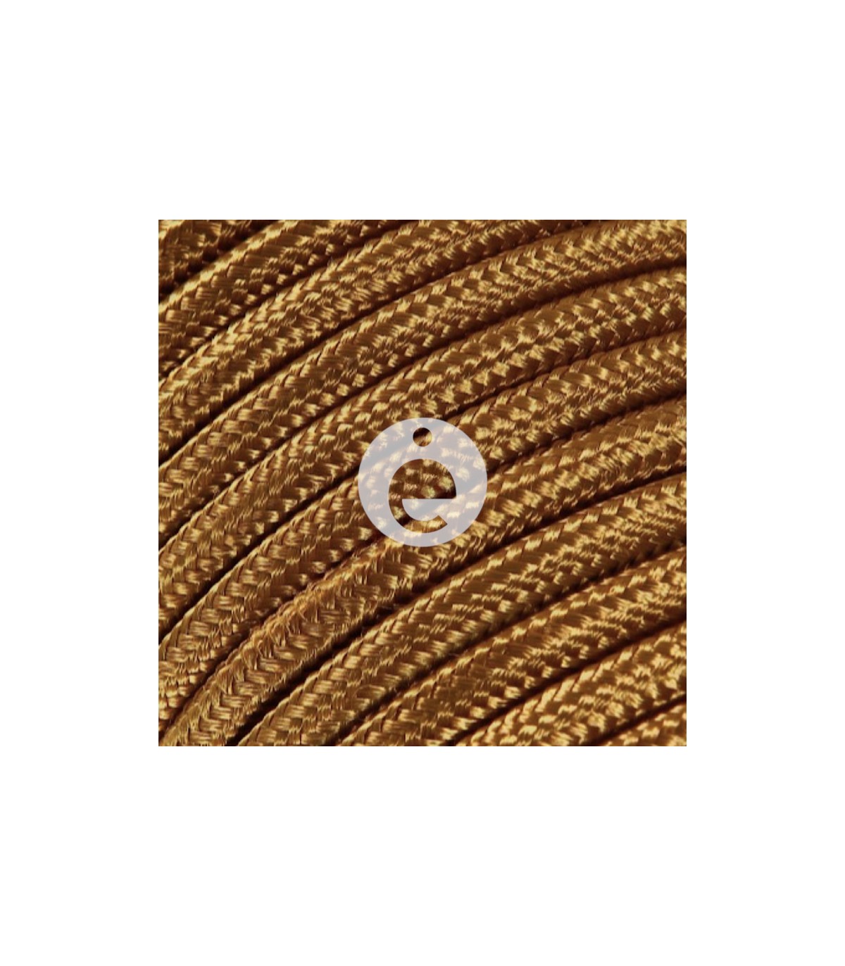 Câble électrique rond 2x0,75 mm recouvert d’un tissu effet brillant couleur cuivre.