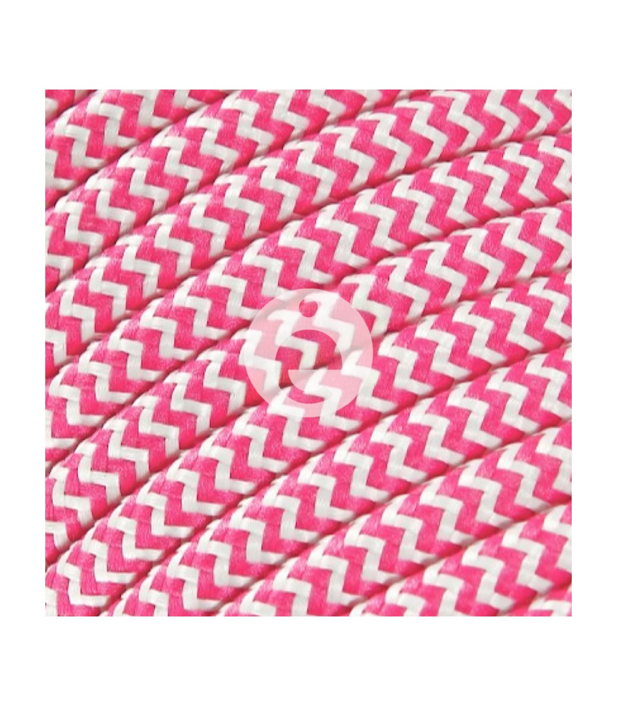 Câble électrique rond 2x0,75 mm recouvert d’un tissu effet zigzag blanc rose.