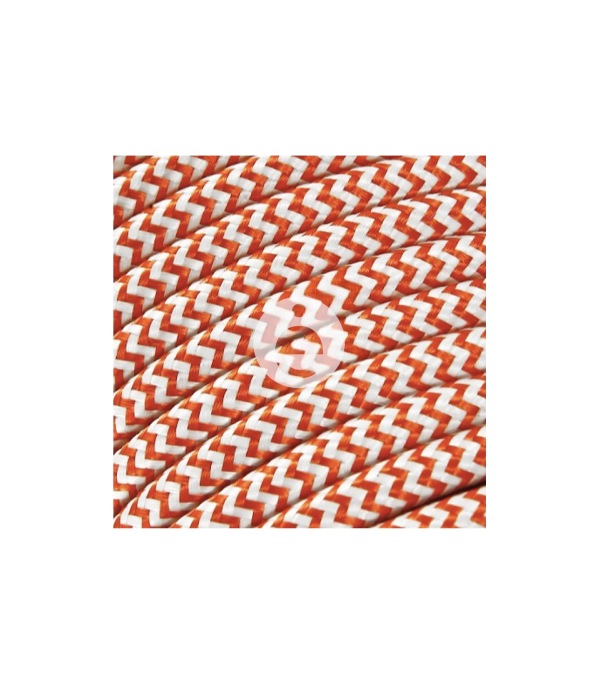 Câble électrique rond 2x0,75 mm recouvert de tissu effet brillant zig zag blanc orange.
