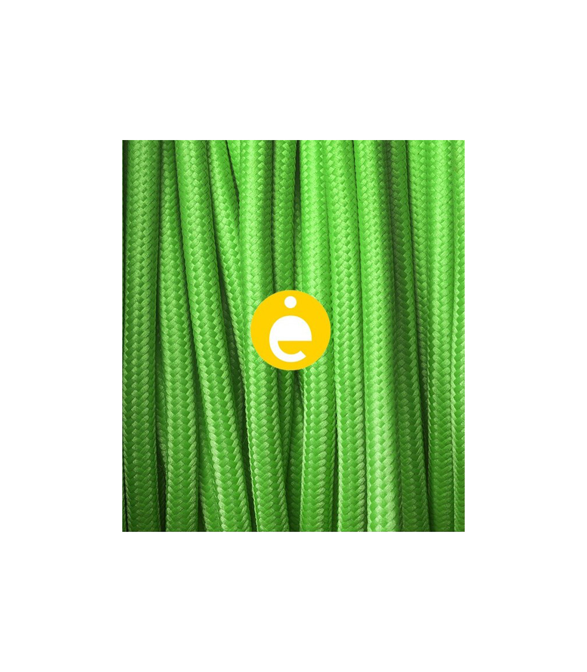 Câble électrique rond 2x0,75 mm recouvert d’un tissu effet brillant rose fluo.