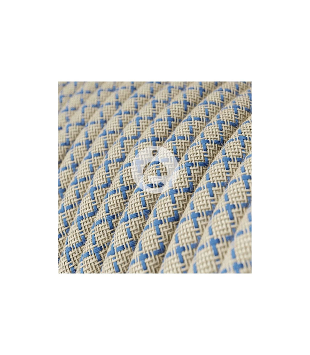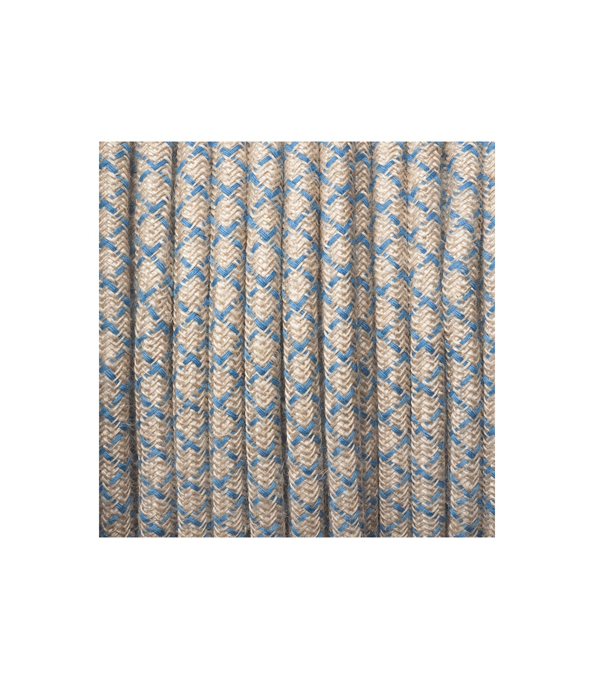 Câble rond flexible à double isolation, recouvert de tissu. Coton bleu effet mat avec diamants.