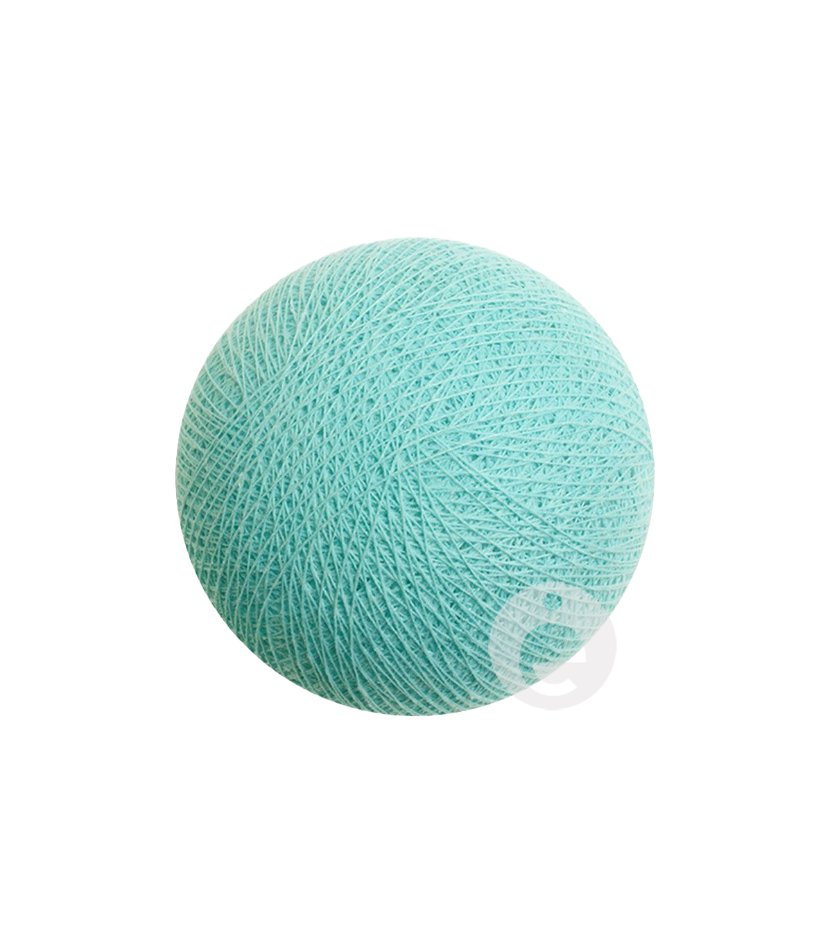 Boule de guirlande, 7 cm de diamètre, couleur aqua. Avec perforation pour introduire la lumière et créer la guirlande.