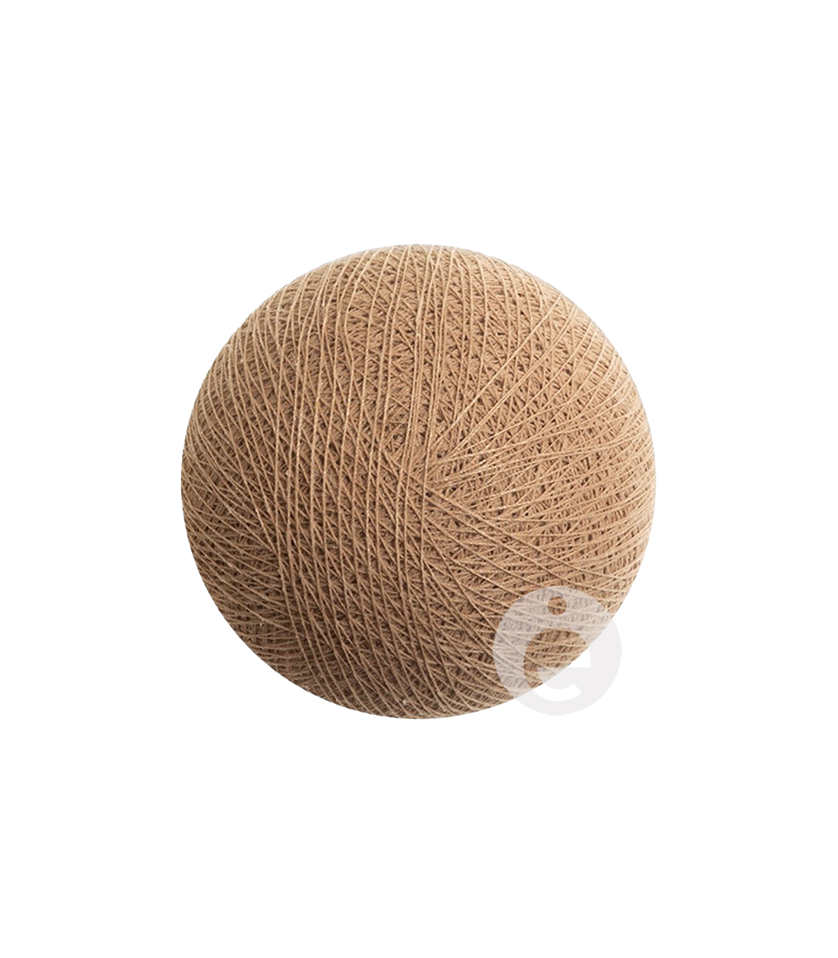 Boule de guirlande, 7 cm de diamètre, brun clair. Avec perforation pour introduire la lumière et créer la guirlande.