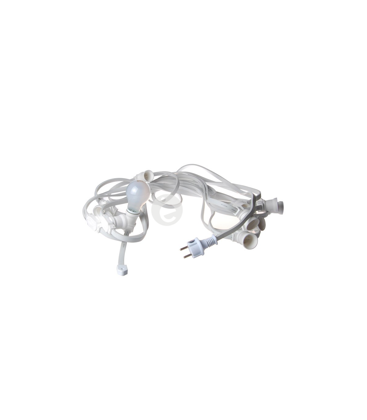 Verveine de luces 230V 50 Hz, E27. Longueur totale 9,6 m, 12 bagues. Distance entre les douilles de 80 cm et 1,5 m par rapport à la douille. Les bagues comprennent un joint et ont un indice de protection IP67. N’oubliez pas d’acheter les bulbes, nous vous recommandons les bulbes sphériques, avec les colorés, vous pouvez donner à cette verveine une touche très spéciale.