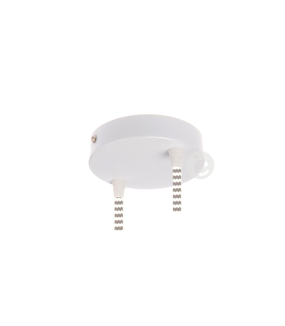 Support plat en métal blanc avec deux prises pour l’installation de deux ampoules. Diamètre 9 cm et 2 cm de haut. Installation par vis, comprend une plaque de fixation. Comprend un presse-étoupe en plastique. Idéal pour sortir deux lampes, lorsque nous n’avons qu’un seul point de lumière. Choisissez un support de câble pour pouvoir emporter la lampe partout où vous le souhaitez.