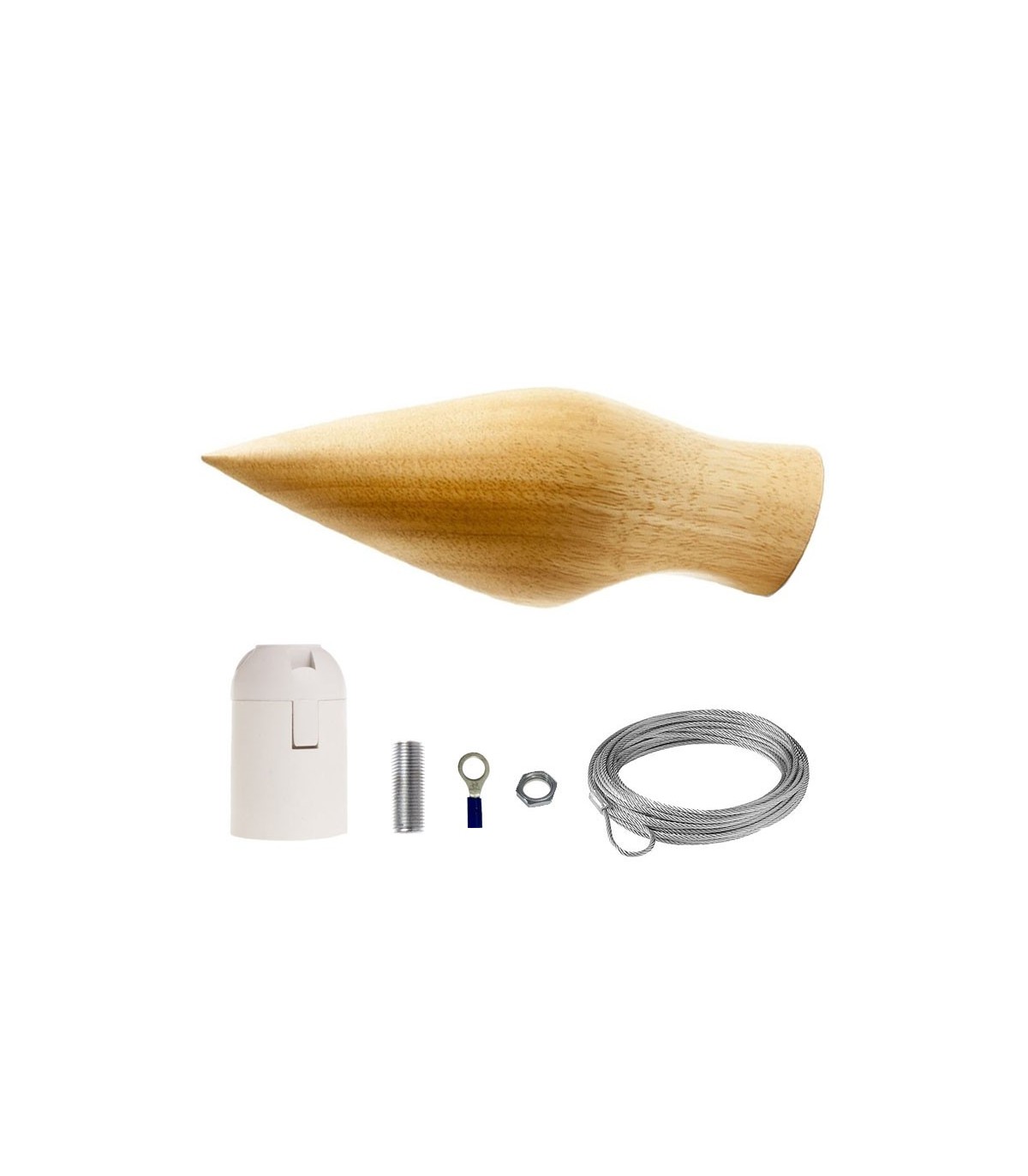Capuchon en bois recouvre le modèle d’oiseau aux formes incurvées. Comprend une douille en thermoplastique avec filetage E27 et un câble de tension. (Support de plafond non inclus.) N’oubliez pas de l’acheter avec votre câble préféré afin que nous puissions vous l’envoyer avec le câble installé.