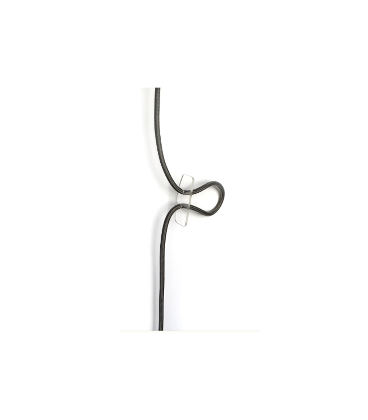 Piece of plexiglass in the shape of a comb to make a loop with the textile cable and to be able to shorten or lengthen our lamp in a very special way