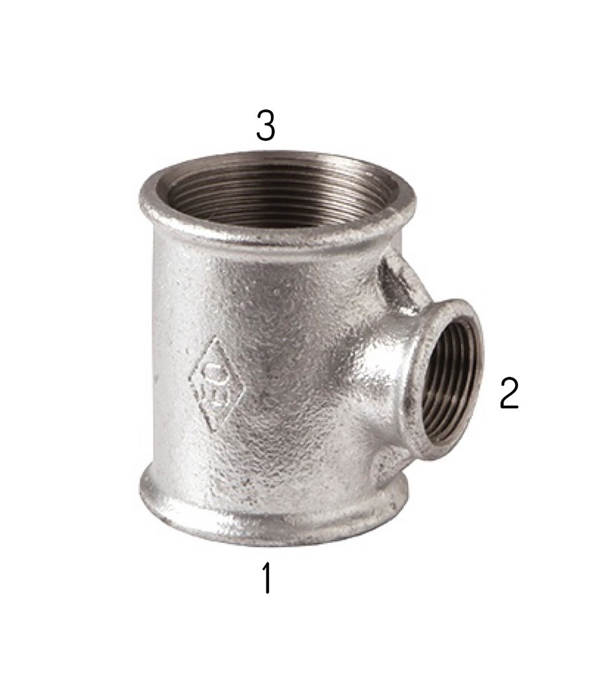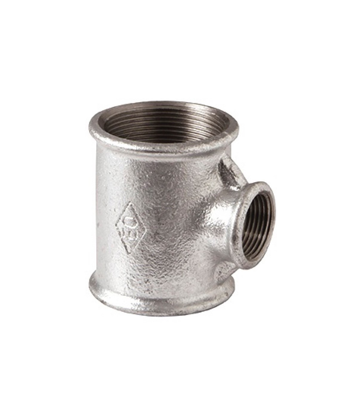 Female 1 3/4 reducer T-piece, 2 1/2 female and 3 3/4 galvanized female.