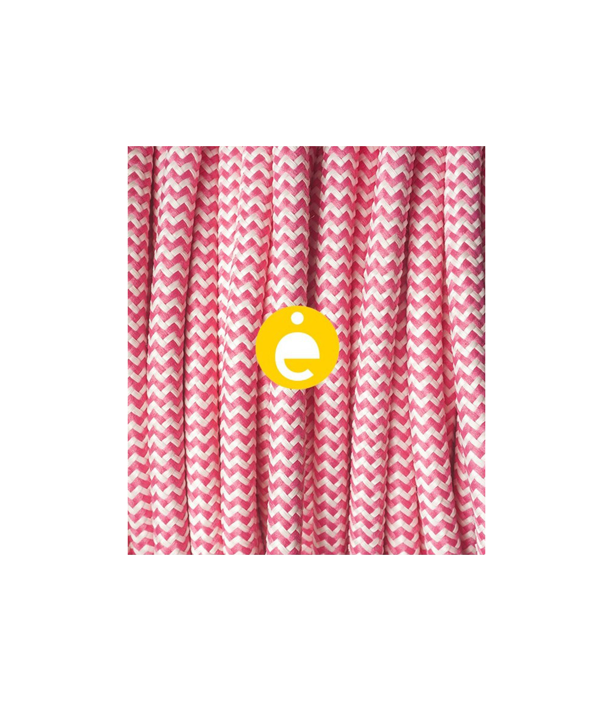 Round electric cable 2x0.75 mm covered in pink white zig zag gloss effect fabric.