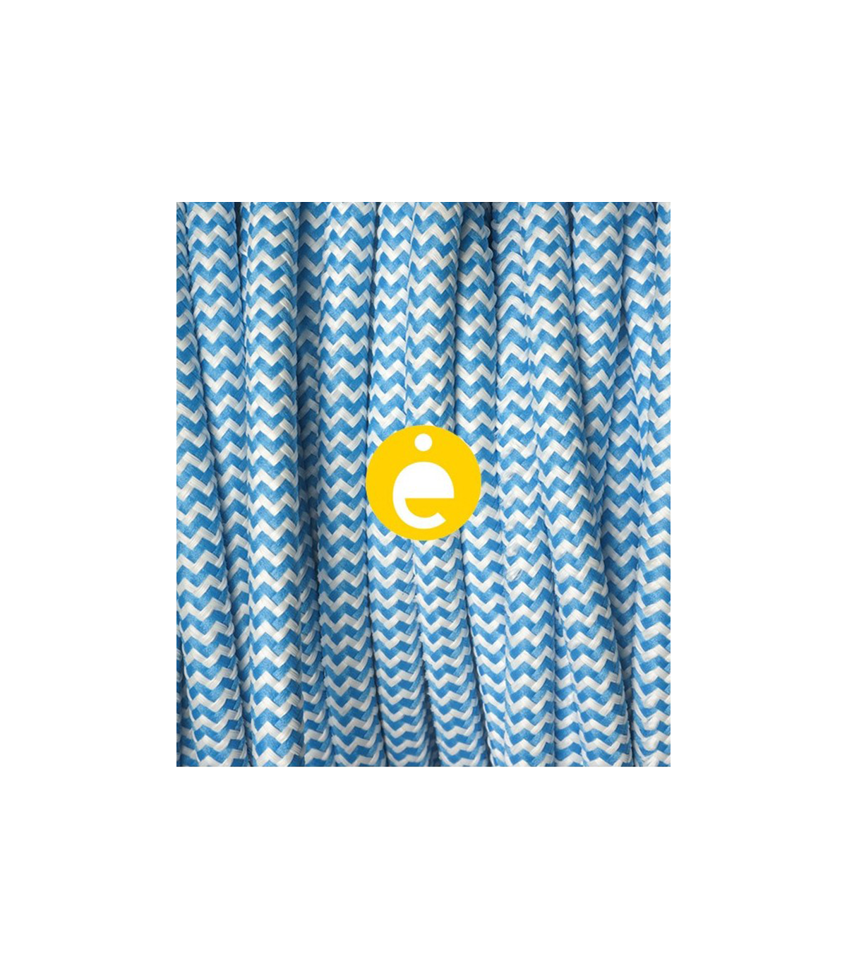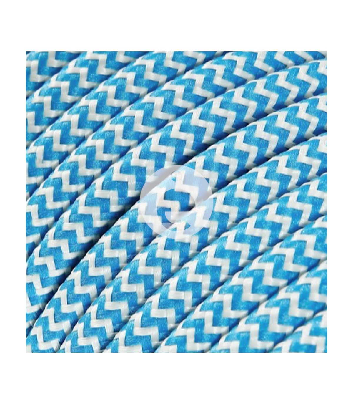 Round electric cable 2x0.75 mm covered in turquoise white zig zag gloss effect fabric.