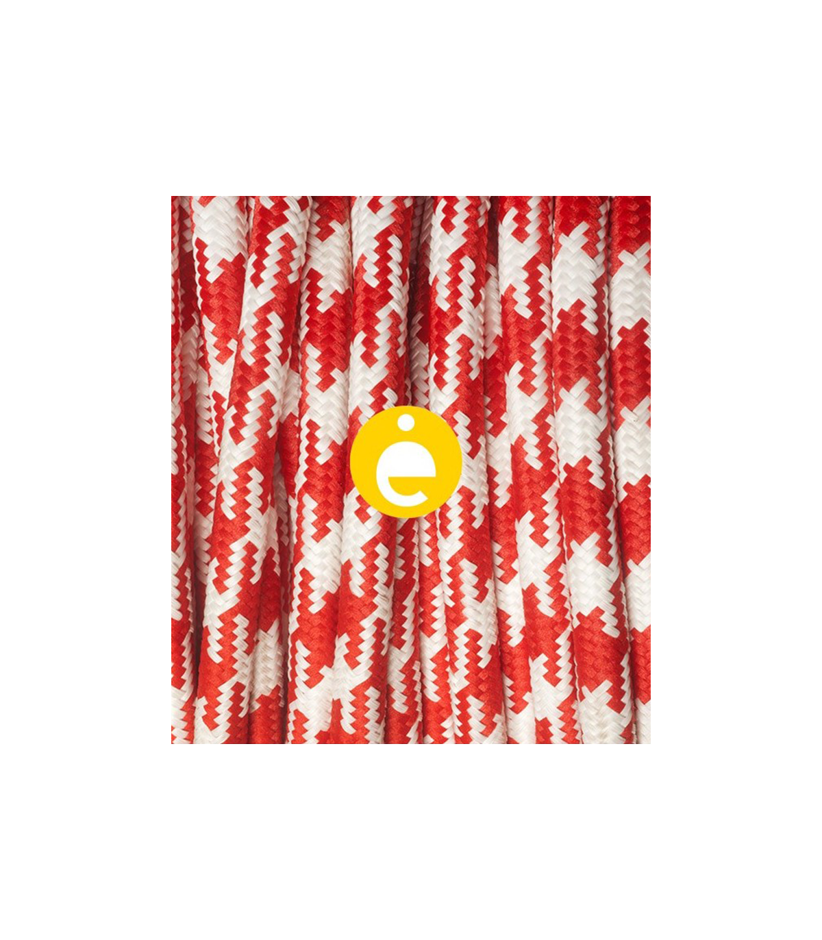 Round electric cable 2x0.75 mm covered in white red houndstooth gloss effect fabric.