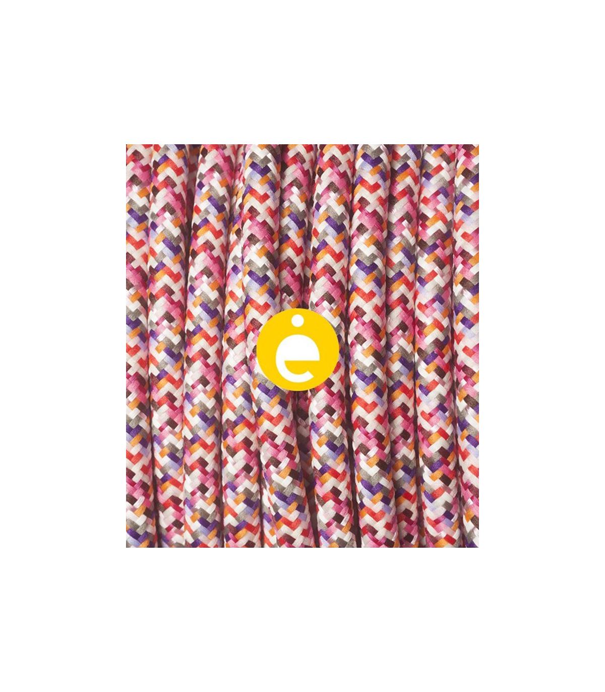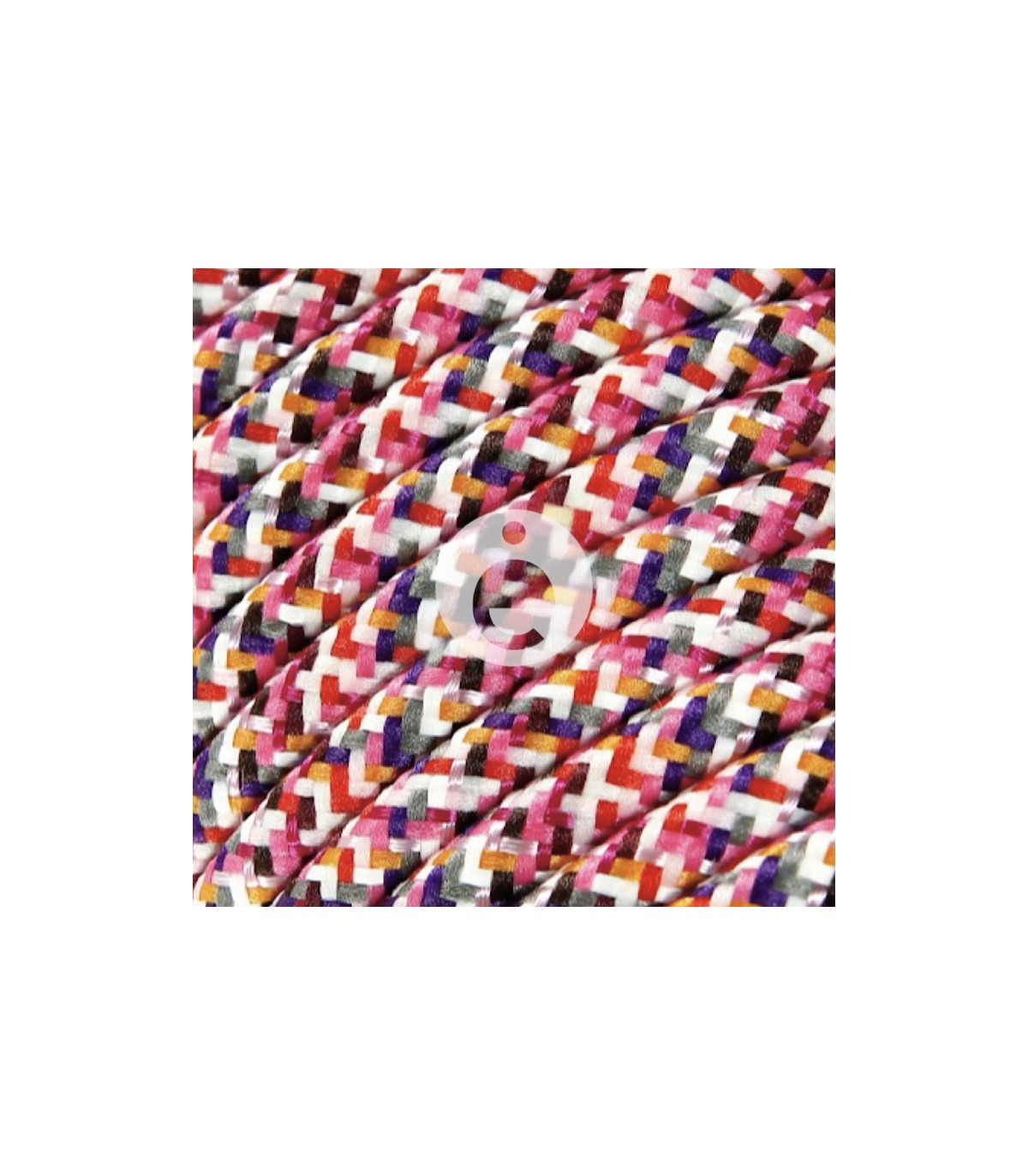 Round electrical cable 2x0.75 mm covered in multi-coloured fuchsia gloss effect fabric.