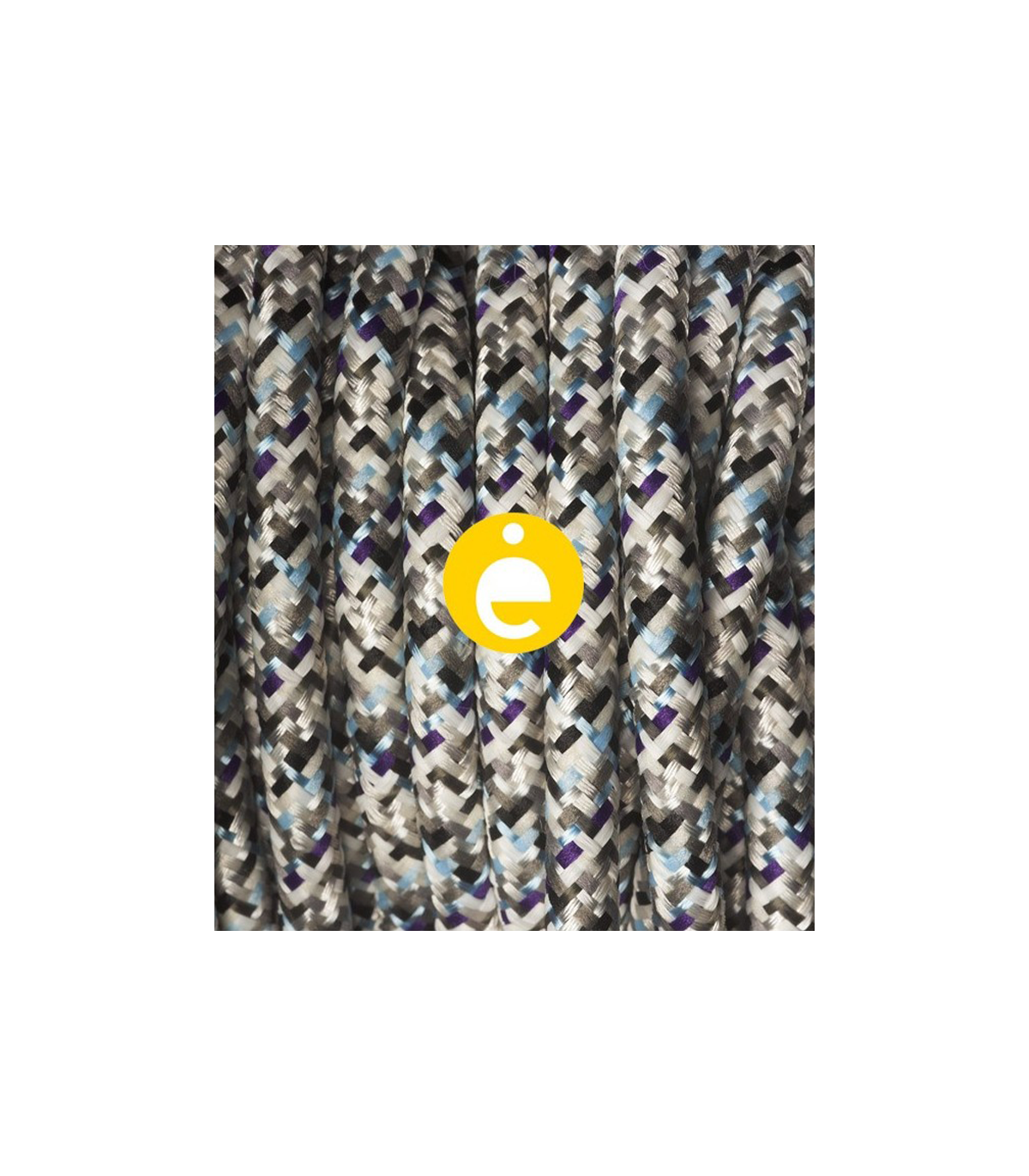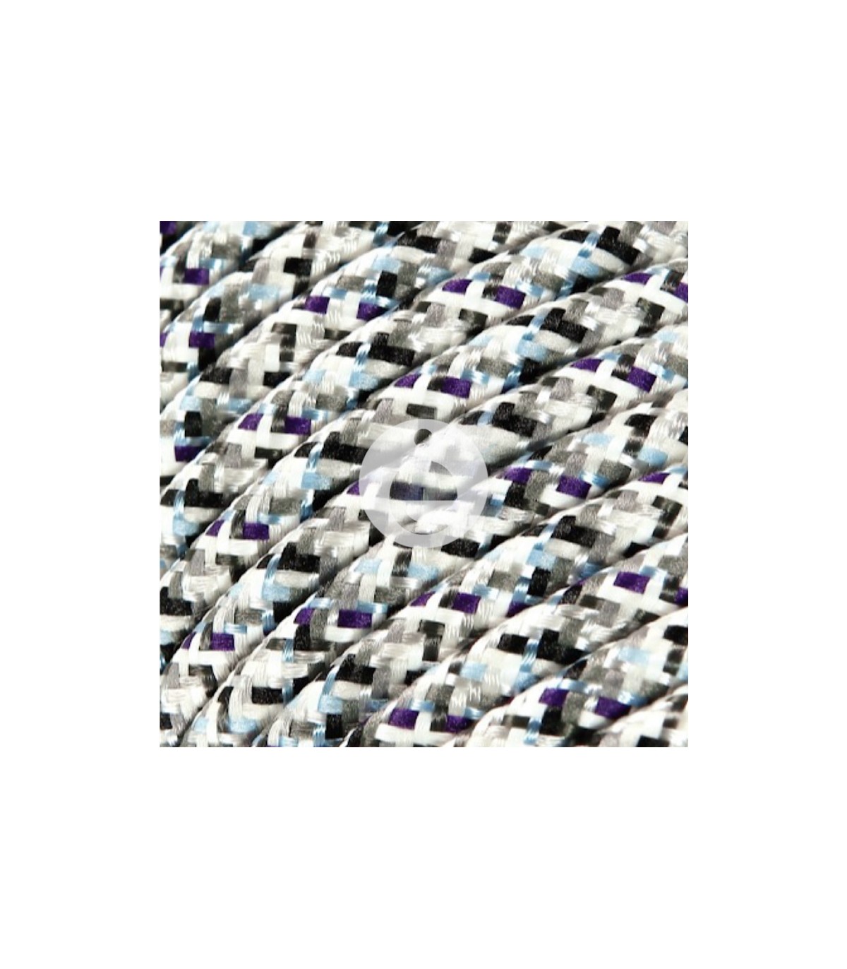 Round electric cable 2x0.75 mm covered in multicolor white gloss effect fabric.
