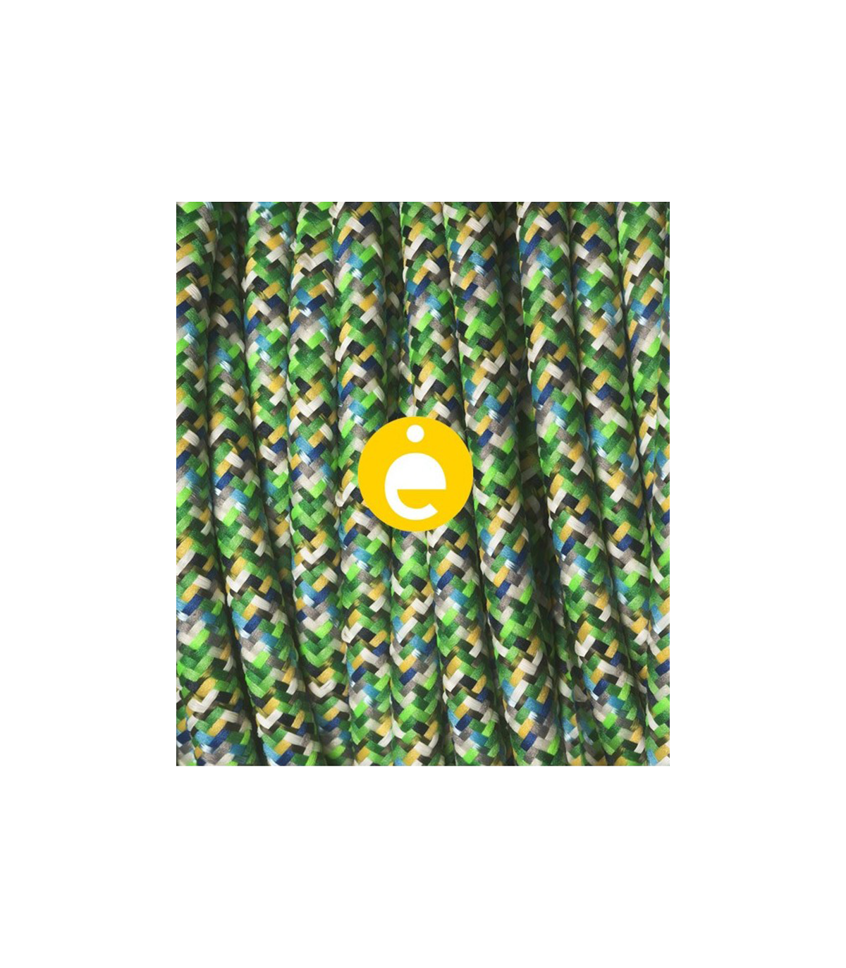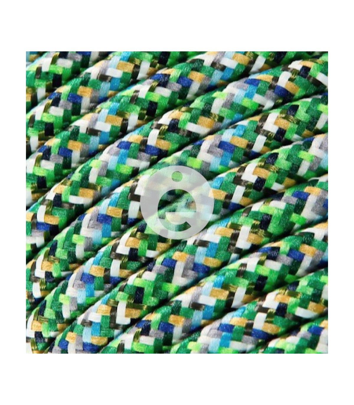Round electric cable 2x0.75 mm covered in multicolor green gloss effect fabric.