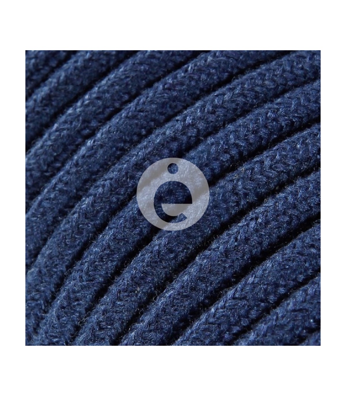 Round flexible cable with double insulation, covered in fabric. Denim-coloured matte effect cotton.