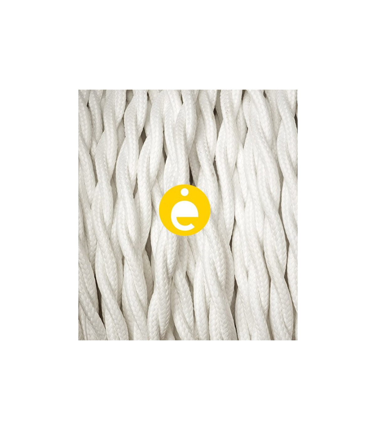 Braided electrical cable 2x0.75 mm covered in white gloss effect fabric.