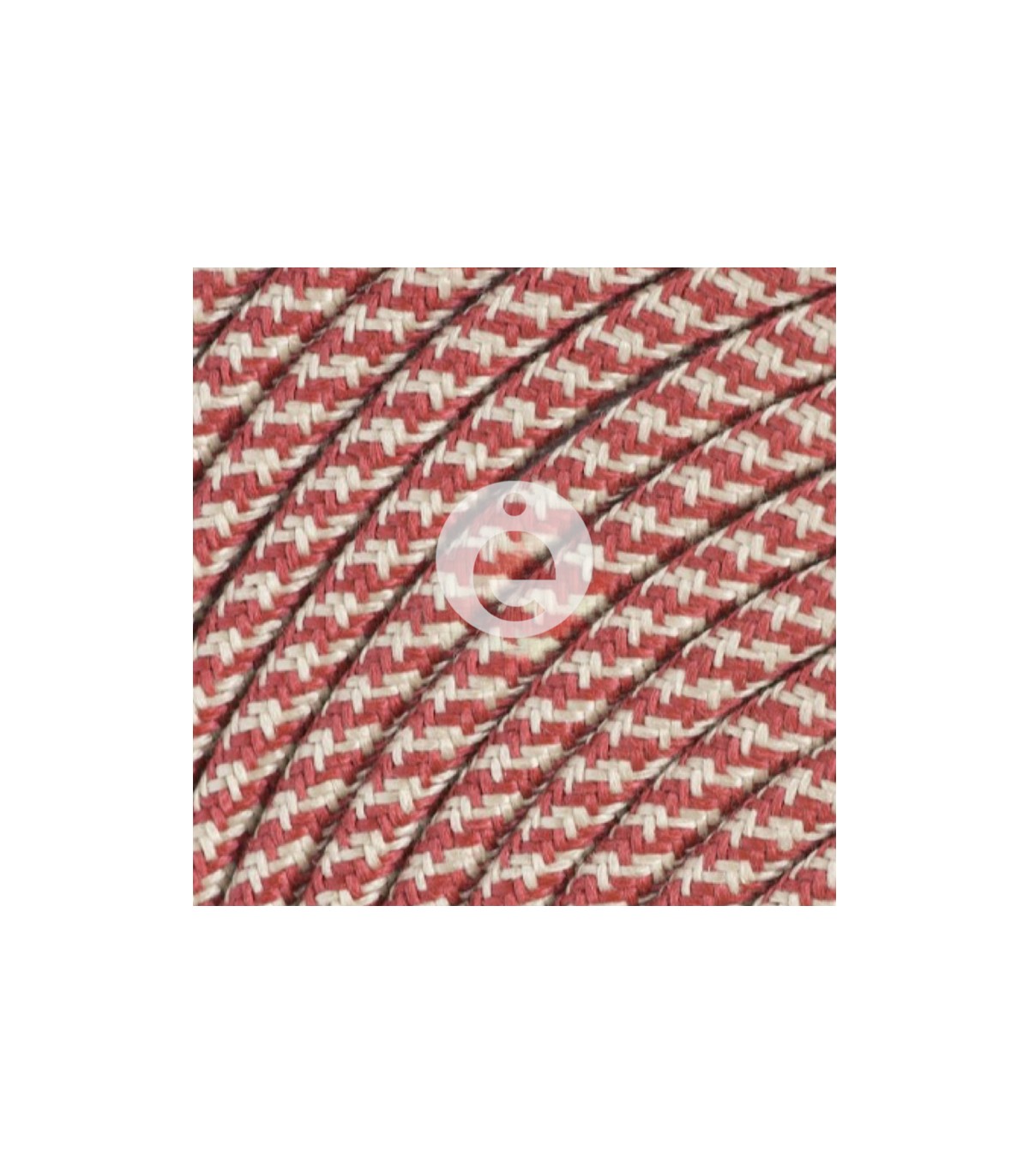 Round flexible cable with double insulation, covered in fabric. Cotton, houndstooth, sand, cherry.