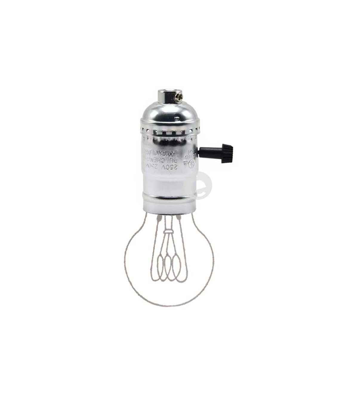 E27 lamp holder in American chrome aluminium with on-off lever