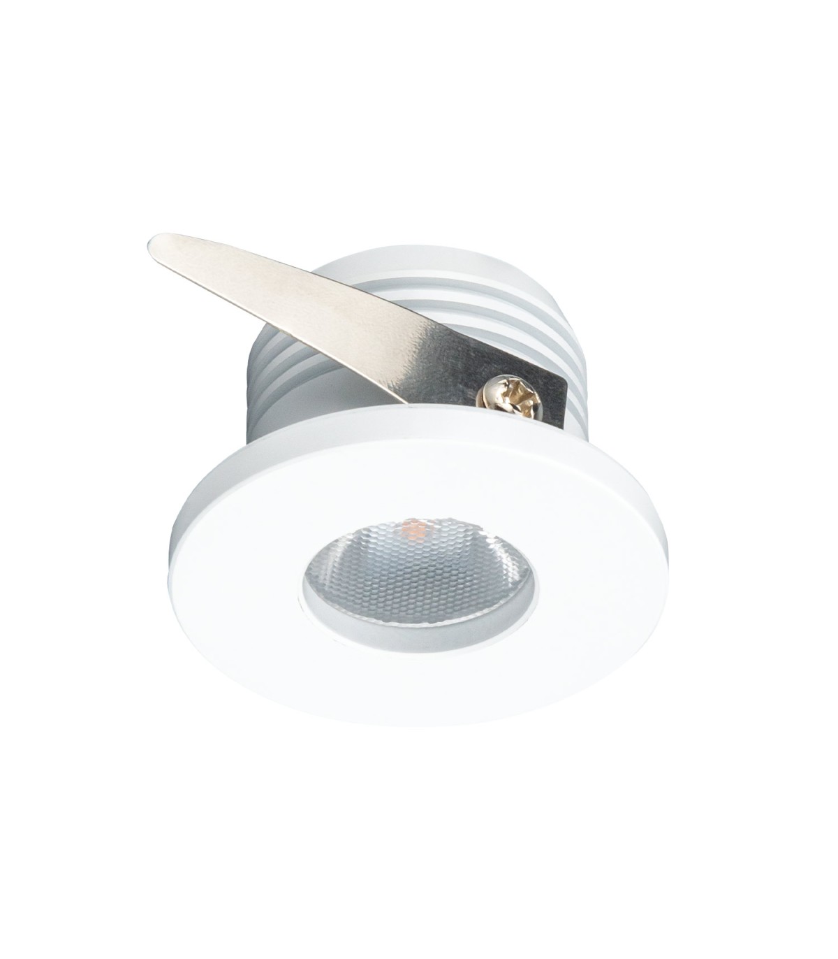 LED mini spot LED luminaire model VESPA, 1W power, 85-265V AC power, mini LED spot. Colour temperature of 3000K, 60 lumens and a luminous efficacy of 60lm/W. IK06 protection. With an OSRAM COB light source and a long service life of up to 30,000 hours.