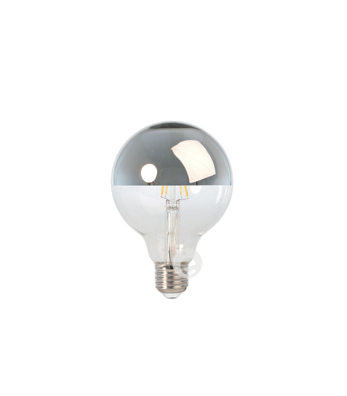 G95 3.5W silver dome LED bulb. Very efficient A+, average luminous flux 250 lm. Warm light 2300 K. Ideal bulb for backlighting spaces. Dimmable with LED dimmers.