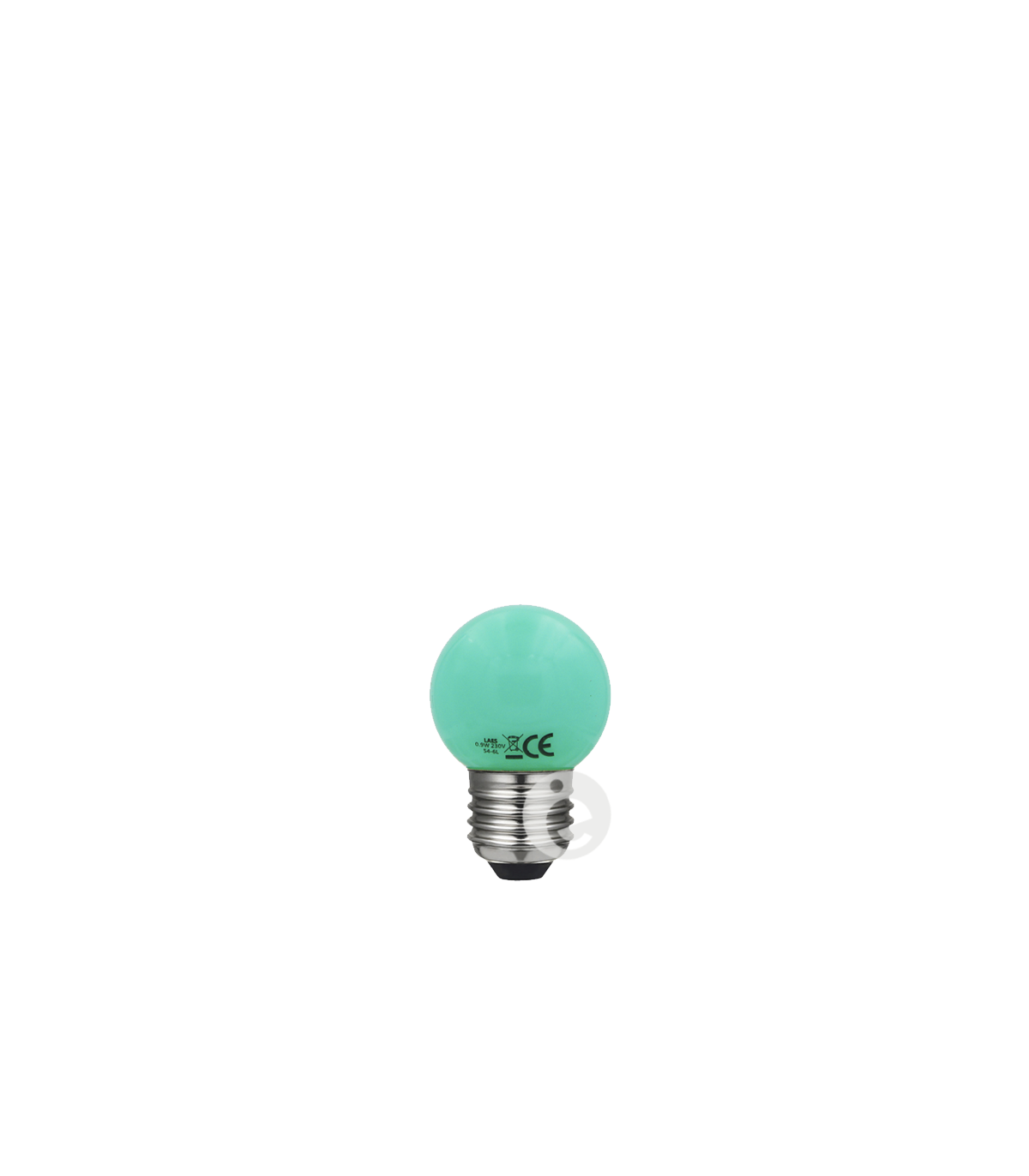 Green LED spherical LED bulb, 0.9 W, green, 240 V E27. Efficient low-light bulb, Dimensions 45 mm x 73 mm, perfect for installation in festivals.
