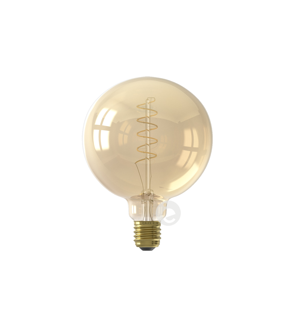 White globe bulb G125, E27, 3.8 W 220-240V 50-60 Hz . Very warm light 2100 K, 250 lm, very efficient bulb and low intensity, perfect for replacing filament bulbs, very decorative. Lifespan 15000 h. Golden-plated crystal.
