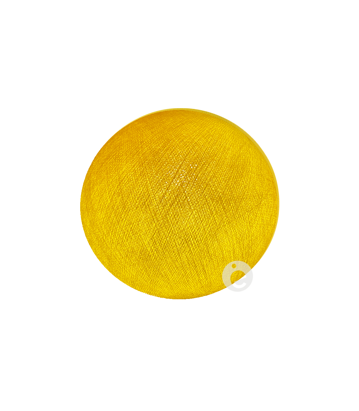 Yellow thread ball lampshade, in various diameters: 25, 36 and 51 cm. The ball is supplied folded, with a balloon for inflation and assembly. Although it's very easy, don't forget to download the instructions from our website. Includes E27 bushing and floor or ceiling bracket. (Take your pick.)