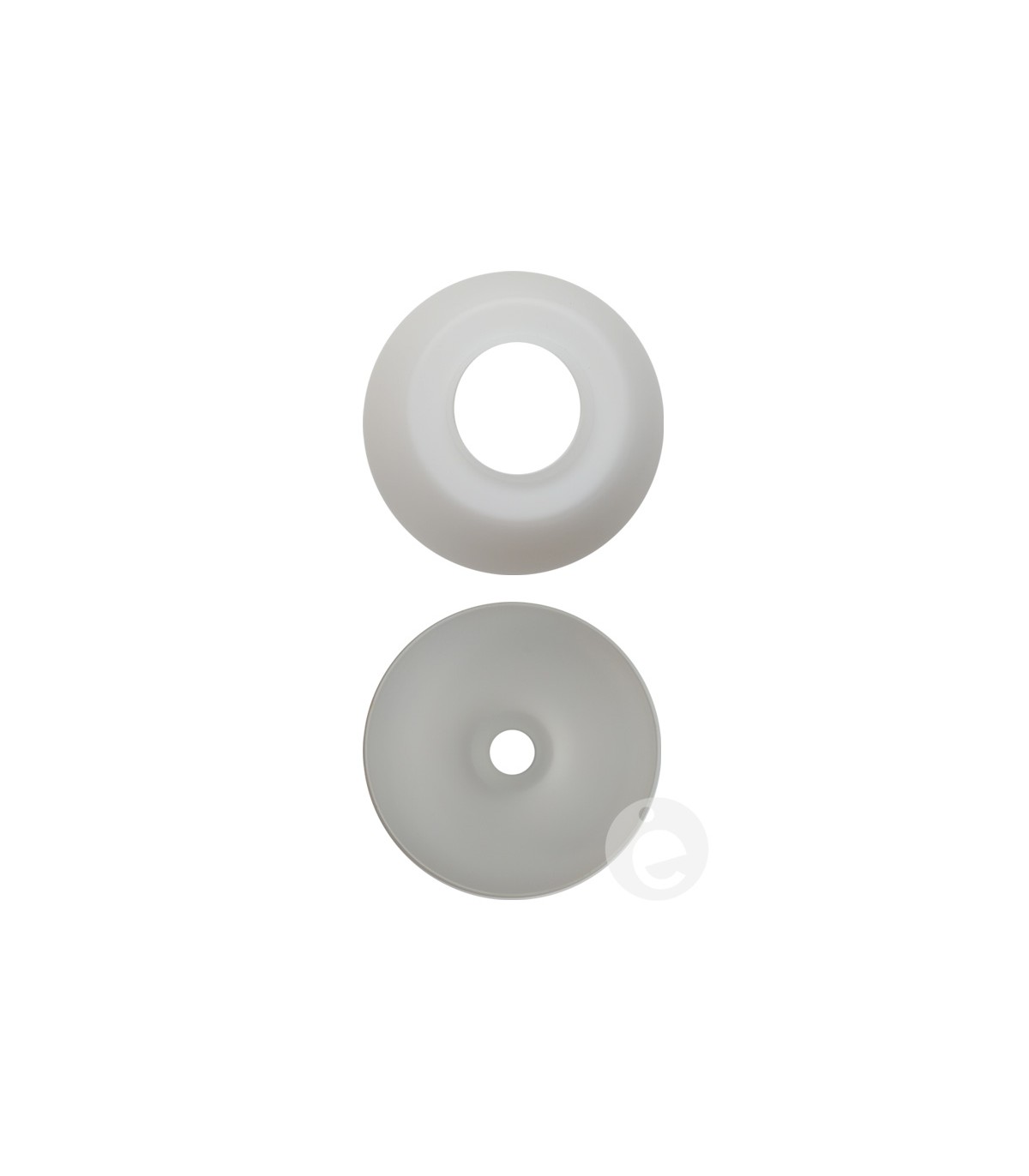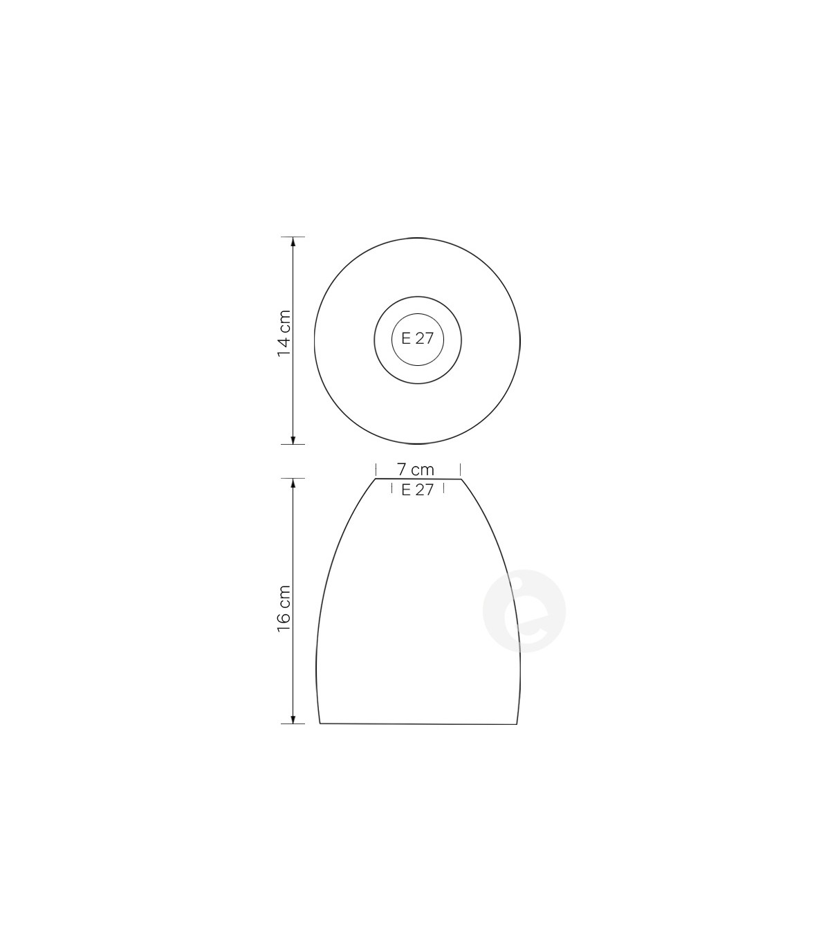 Semi-translucent opal glass bell, dimensions: 14.5cm diameter by 16cm high. Don't forget to accompany it with a threaded socket with two rings (lamp holder) and of course a nice cable!!